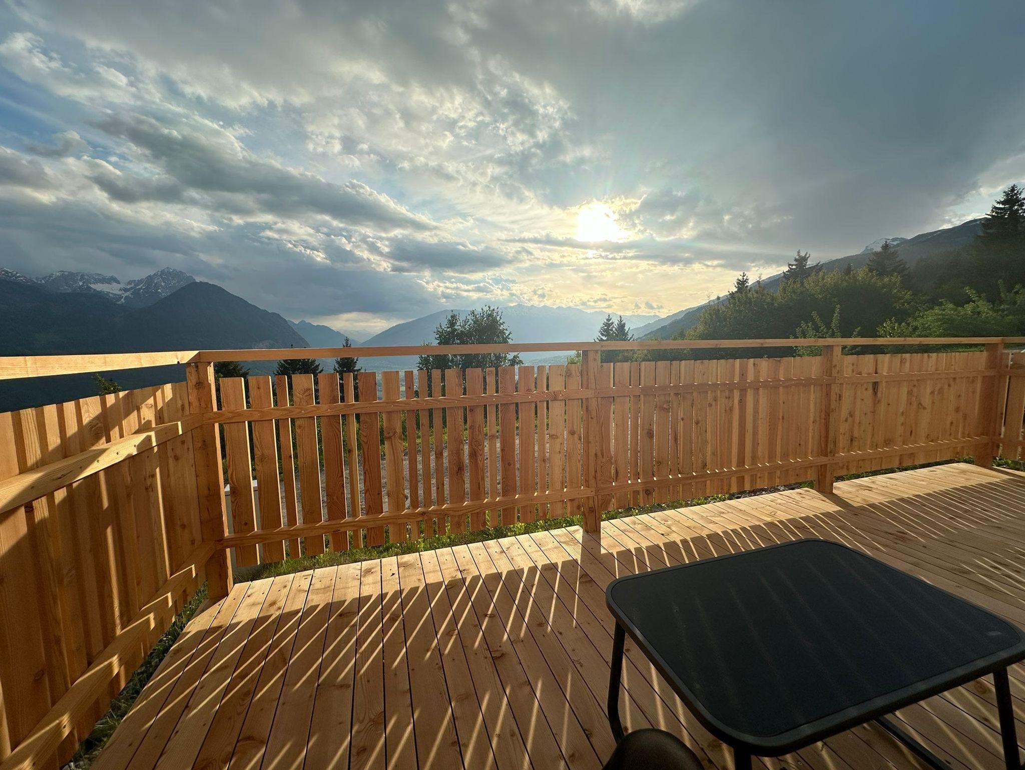 In idyllischer Lage hoch über dem Talboden von Lienz, auf knapp über 1.000 m Seehöhe, bietet die brandneue „Dolomitenblick Suite einen atemberaubenden Panoramablick auf die Lienzer Dolomiten.