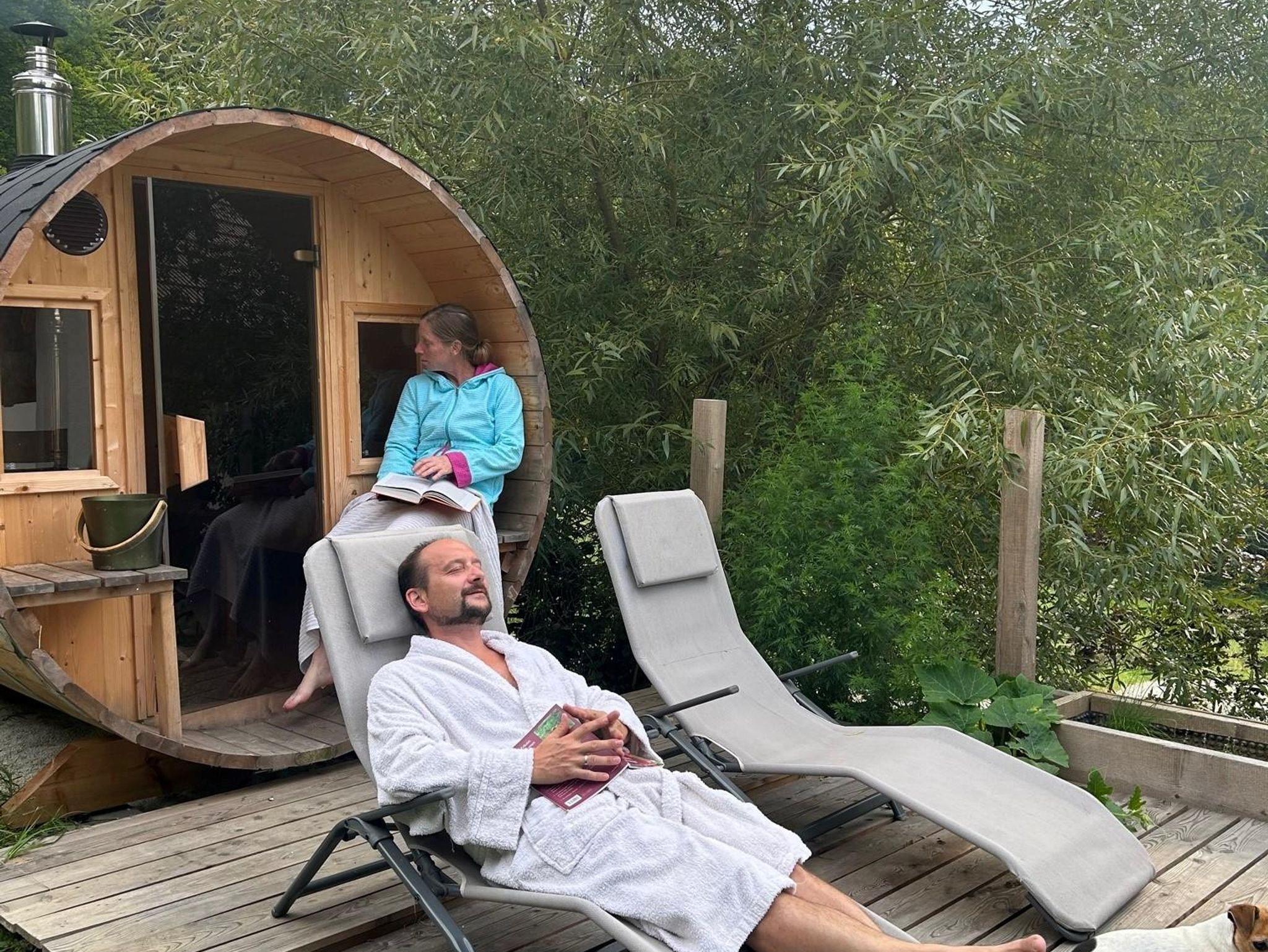 Für Wellness steht die Holzofensauna neben dem Haus bereit. Ein besonderes Highlight ist auch das große Tipi mit Sandspielplatz, das Groß und Klein zum Nächtigen einlädt.