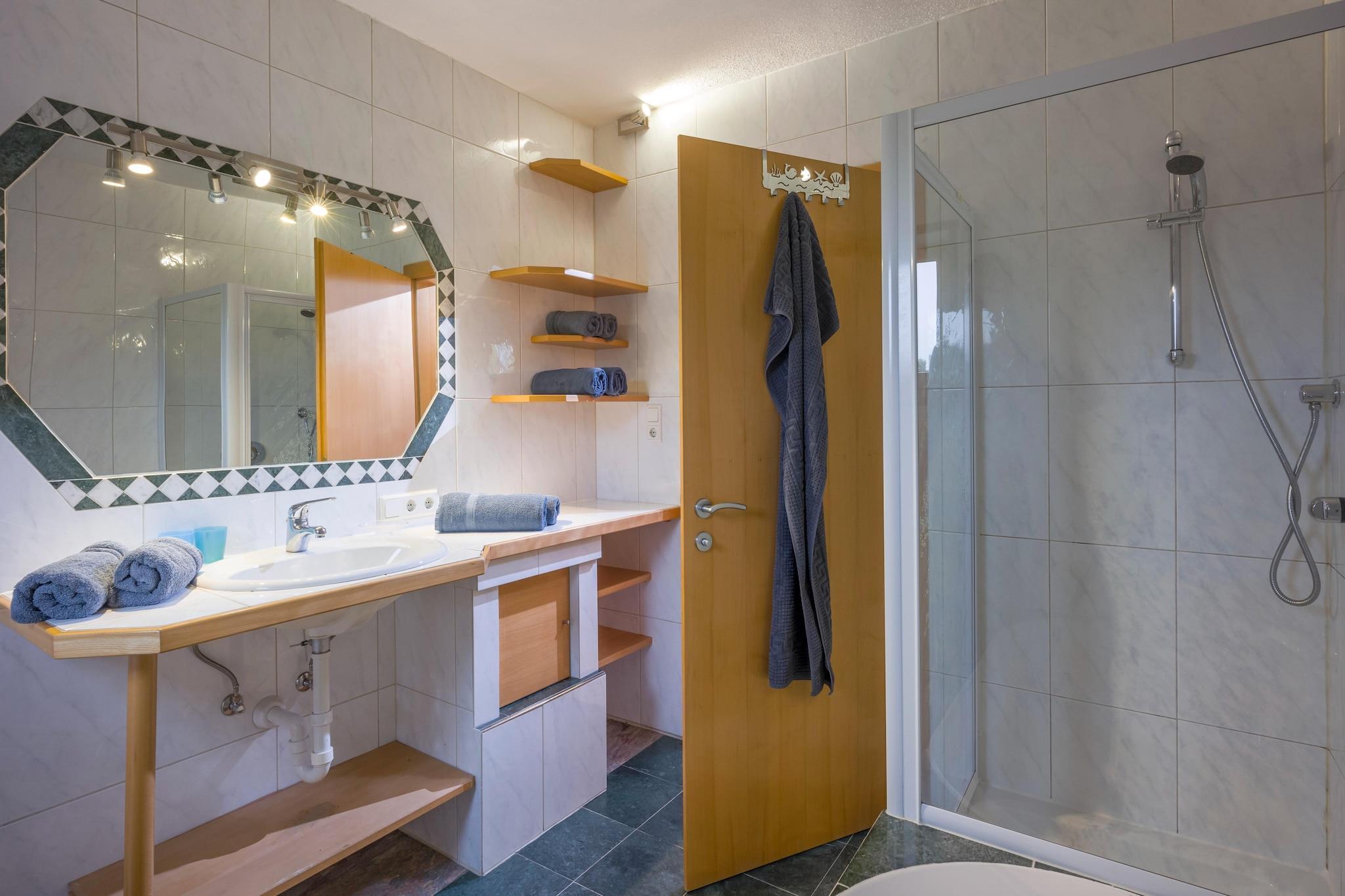 In der 1. Etage: (Wohnzimmer(Doppelschlafcouch), Küche(TV, Kochherd(4 Kochplatten), Backofen, Mikrowelle, Spülmaschine, Kühl-/Gefrierkombination), Schlafzimmer(Doppelbett), Schlafzimmer(Doppelbett), Badezimmer(Badewanne mit Dusche, Dusche(Kabine), Waschbecken), Toilette, Balkon) Flur, Skikeller(Skischuhheizung), Garage, Trockner, Waschmaschine