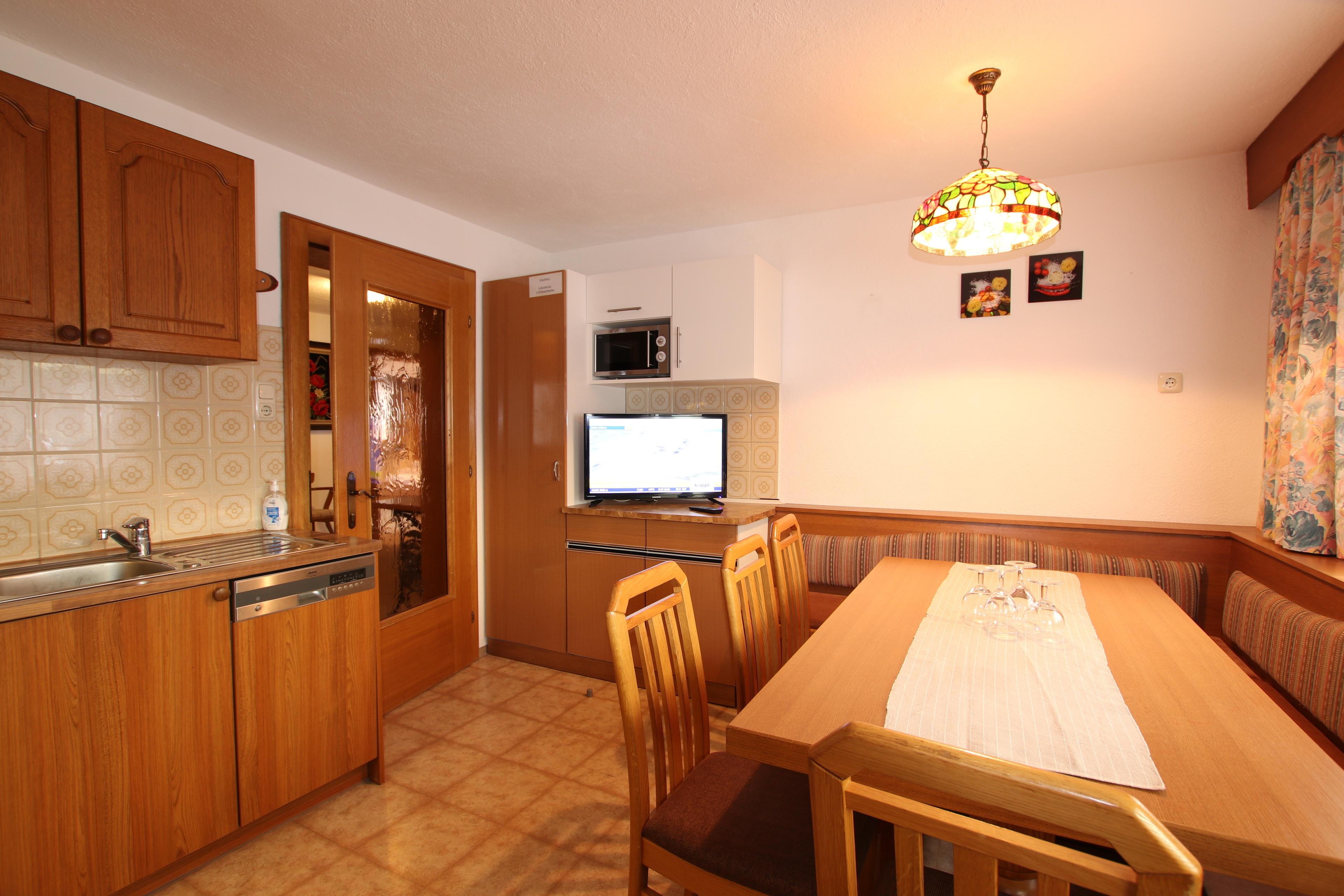 7-Zimmer-Ferienwohnung im Erdgeschoß und Dachgschoß (Schrägen) mit 160 m² Wohnfläche im Zentrum von Kappl im Paznauntal, nur 10 Minuten bis Ischgl (Gratis-Skibusverbindung). Verbindung der beiden Ferienwohnungen über ein internes Treppenhaus.