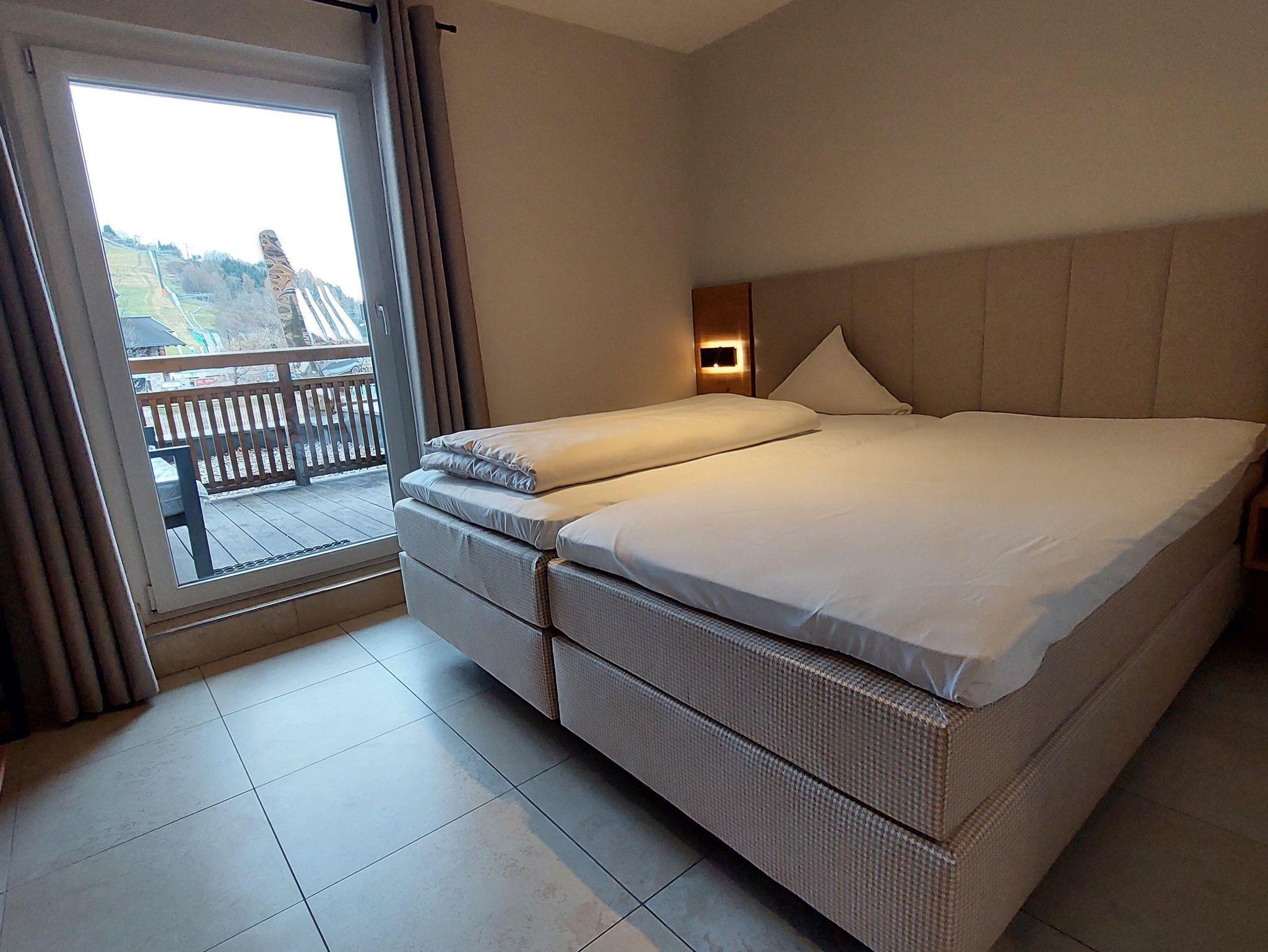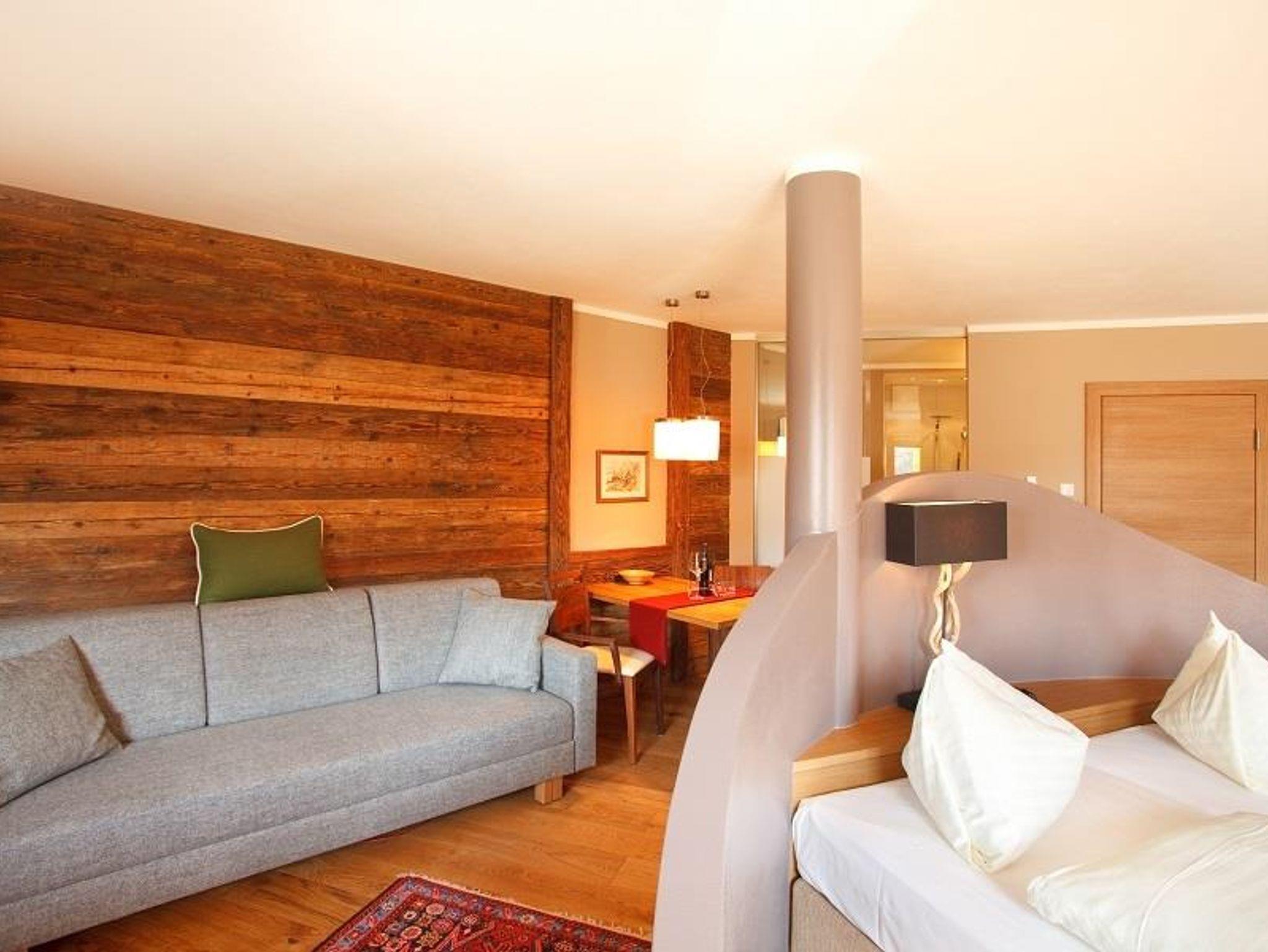 Vom Bett aus schon auf den Bergen. Wie das geht? Ganz einfach in unseren „kleinen“ aber feinen Suiten mit extra großem Doppelbett erwartet Sie ein atemberaubender Blick auf die Berge. Sie verbringen Ihren Urlaub auf 55qm reiner Behaglichkeit.