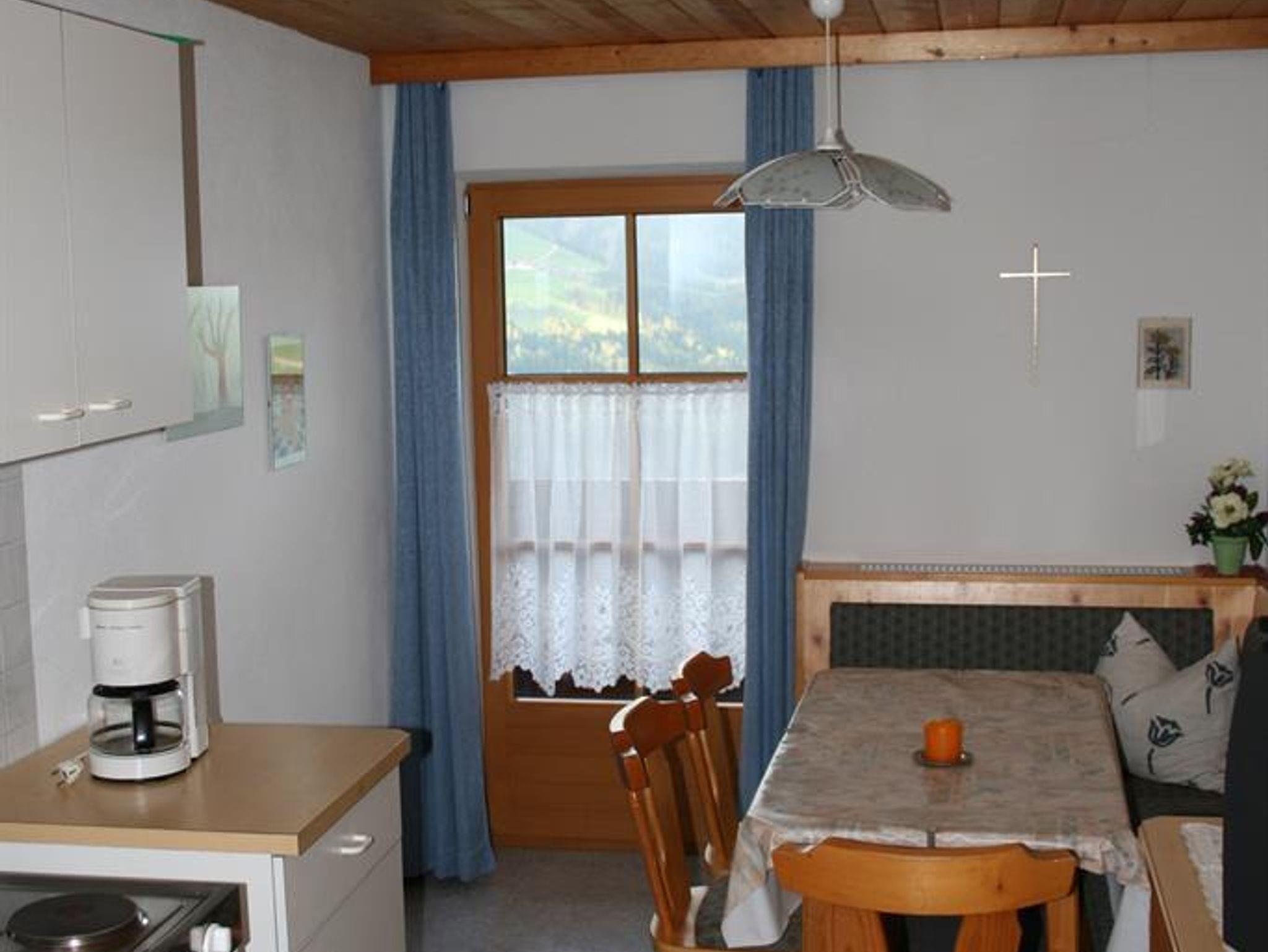 Appartement mit Kochnische und gemütlicher Wohnecke. Vom Balkon aus herrlicher Blick in die Seitentäler, landwirtschaftliche Produkte im Haus erhältlich. Frühstück auf Wunsch möglich.