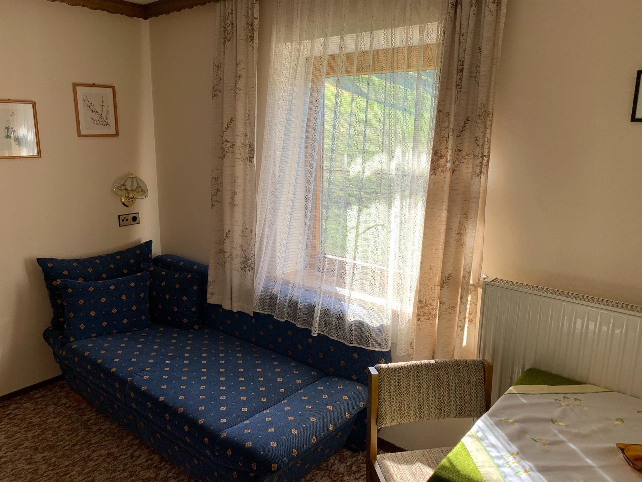 Gemütlich eingerichtete Ferienwohnung für bis zu 4 Personen. Zwei getrennte Schlafzimmer. Blick ins Tal.