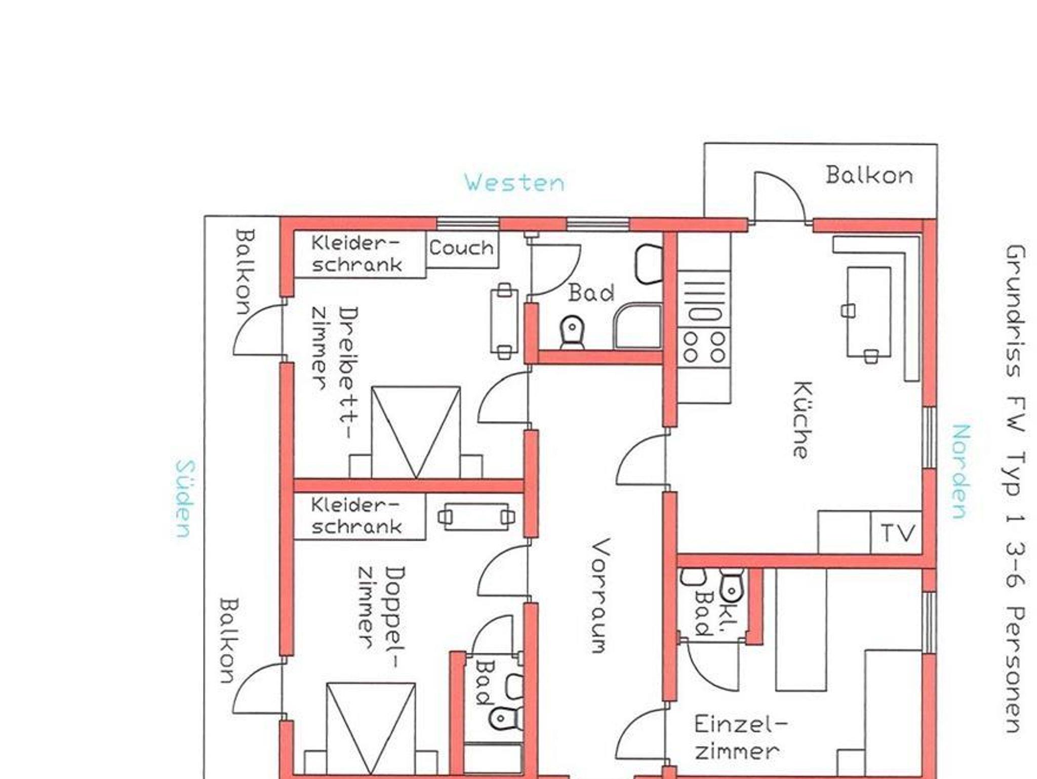 • 3 Schlafzimmer- 2 Doppel- 1 Einzelzimmer