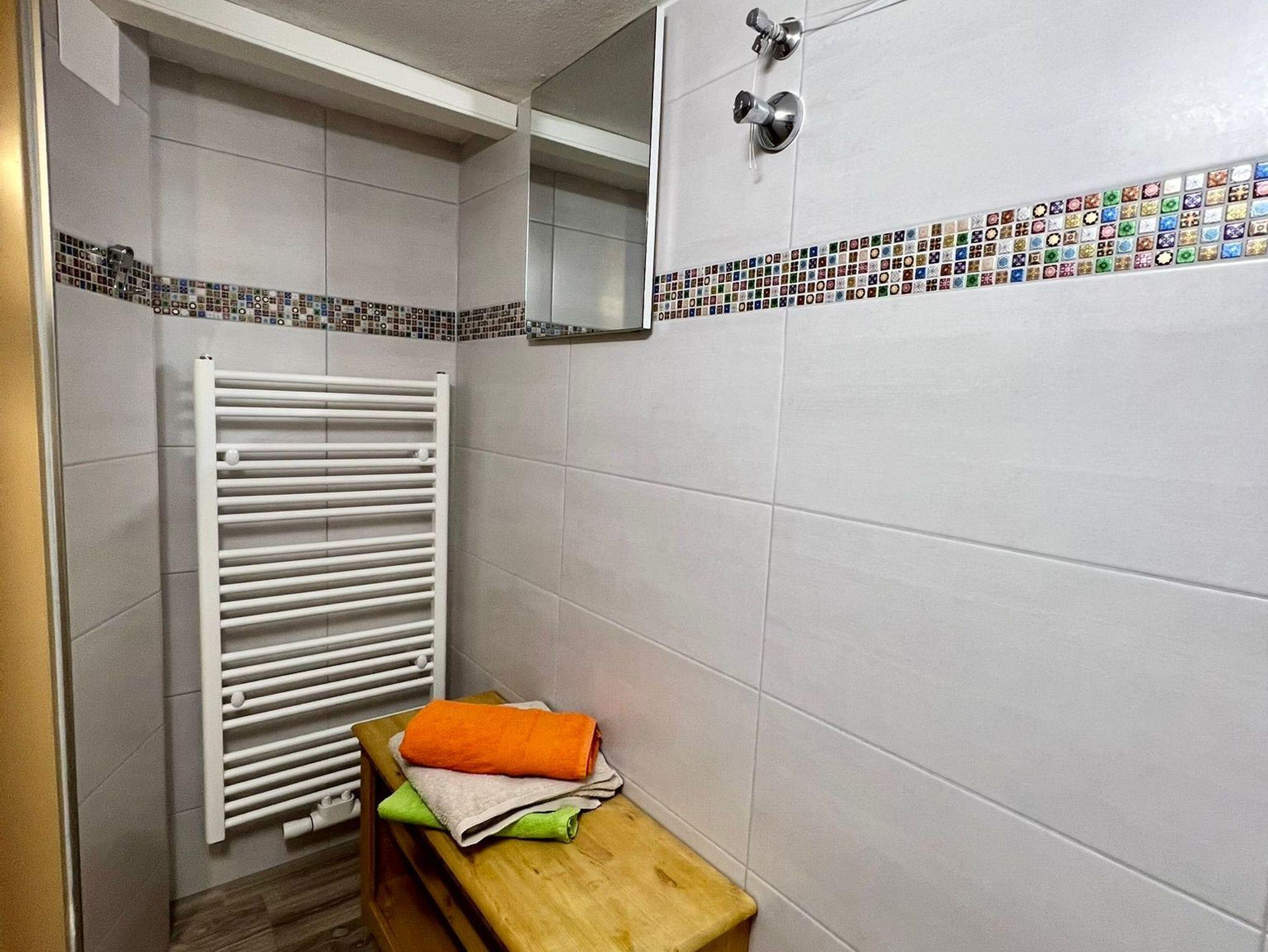 Dusche barrierefrei, mit Heizkörper und Bodenheizung