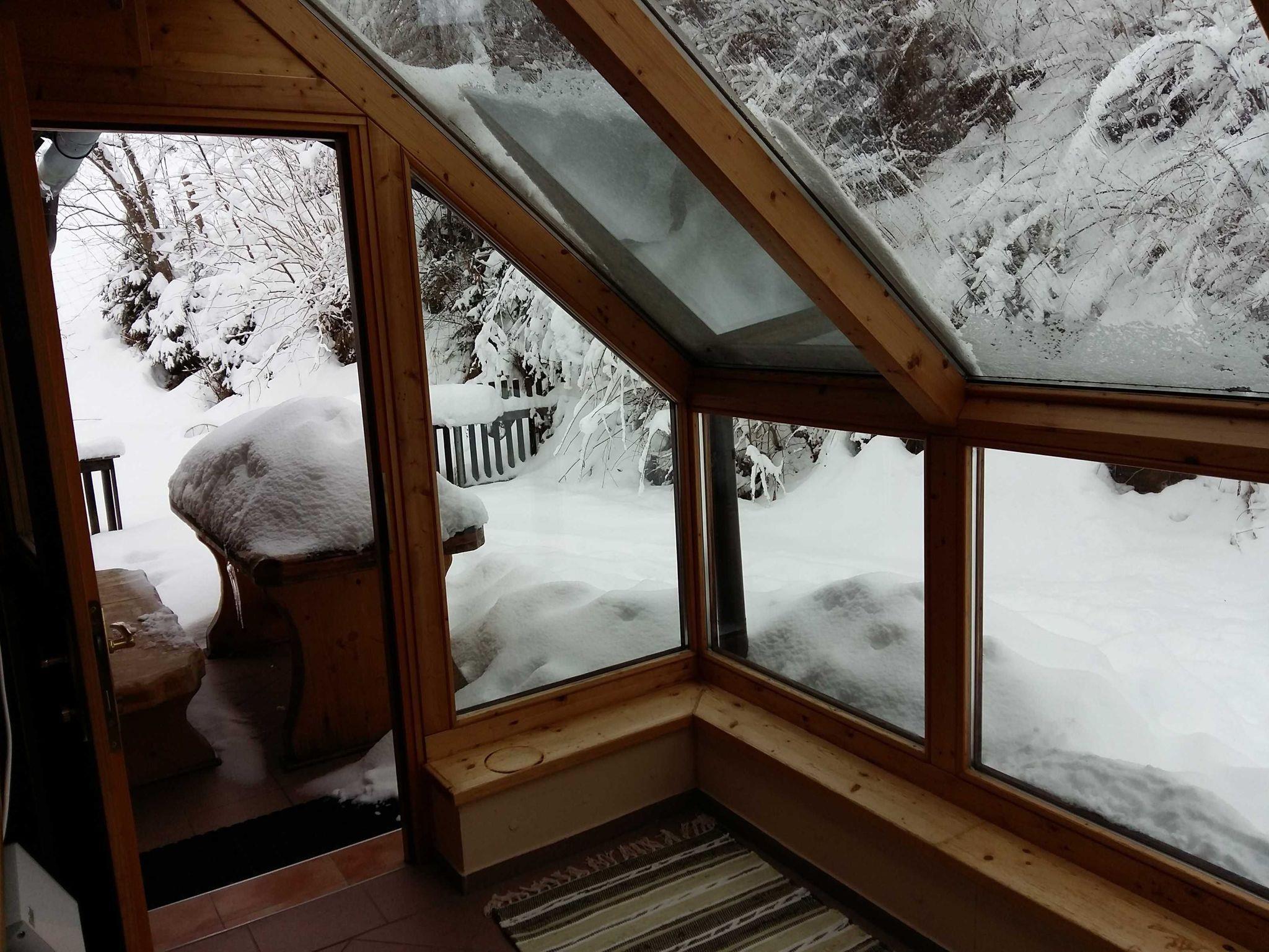 Eine Hütte mit Wintergarten! Wo gibts denn sowas? Na bei uns, am Sonnbichlerhof!