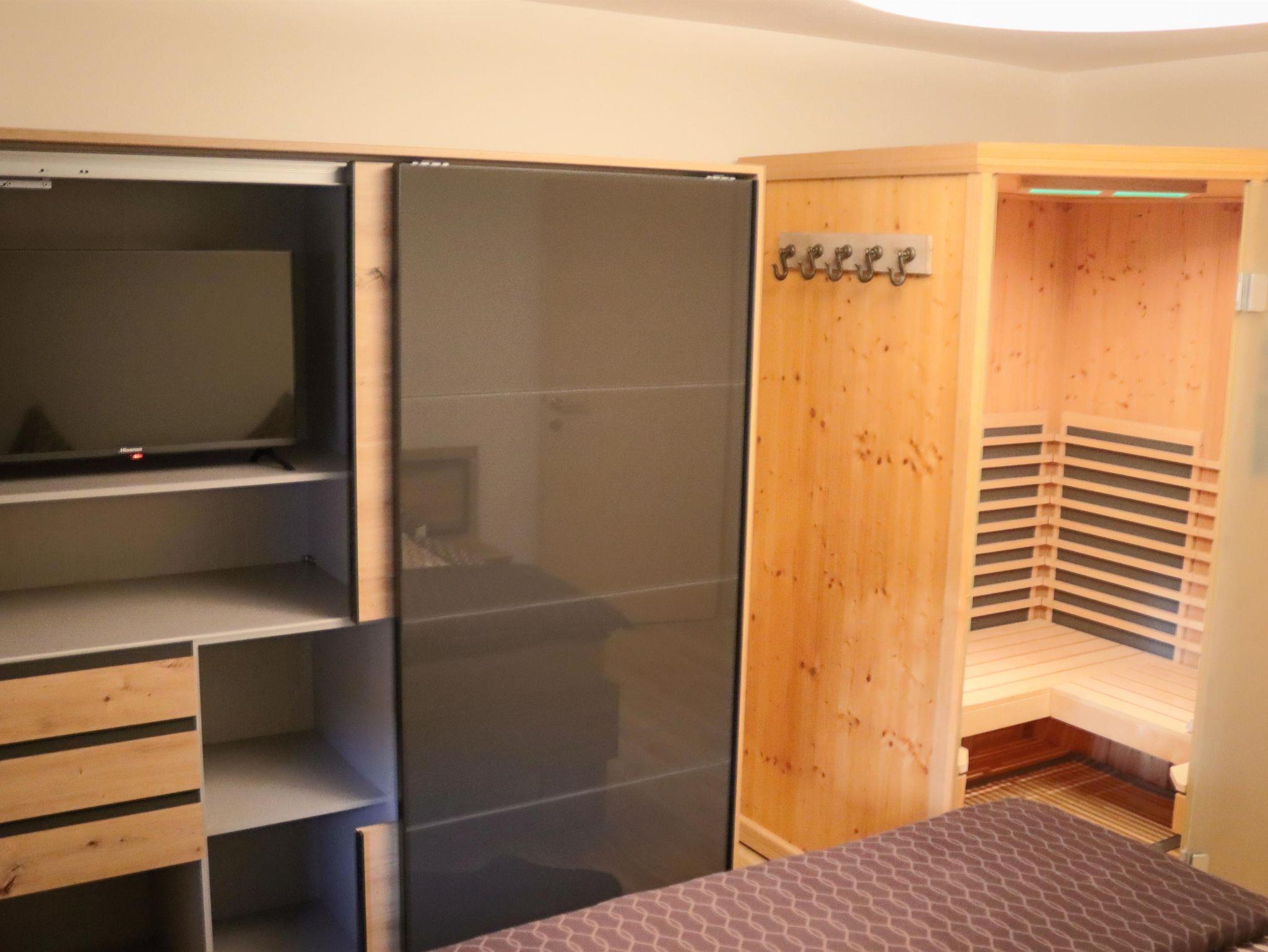 Die exklusive Ferienwohnung mit Whirlpool und Infrarotkabine ist 110m² groß und verfügt über 2 Schlafzimmer mit Flachbild TV, kostenfreies WLAN, Infrarotkabine, Wohnzimmer mit Schlafcouch und Flachbild TV, Esszimmer, eine komplett ausgestattete Küche mit Geschirrspüler und Mikrowelle, 1 Badezimmer mit Dusche und Badewanne, WC und eine Waschmaschine. Alle Fenster sind mit Außenrollos und Fliegengitter ausgestattet.