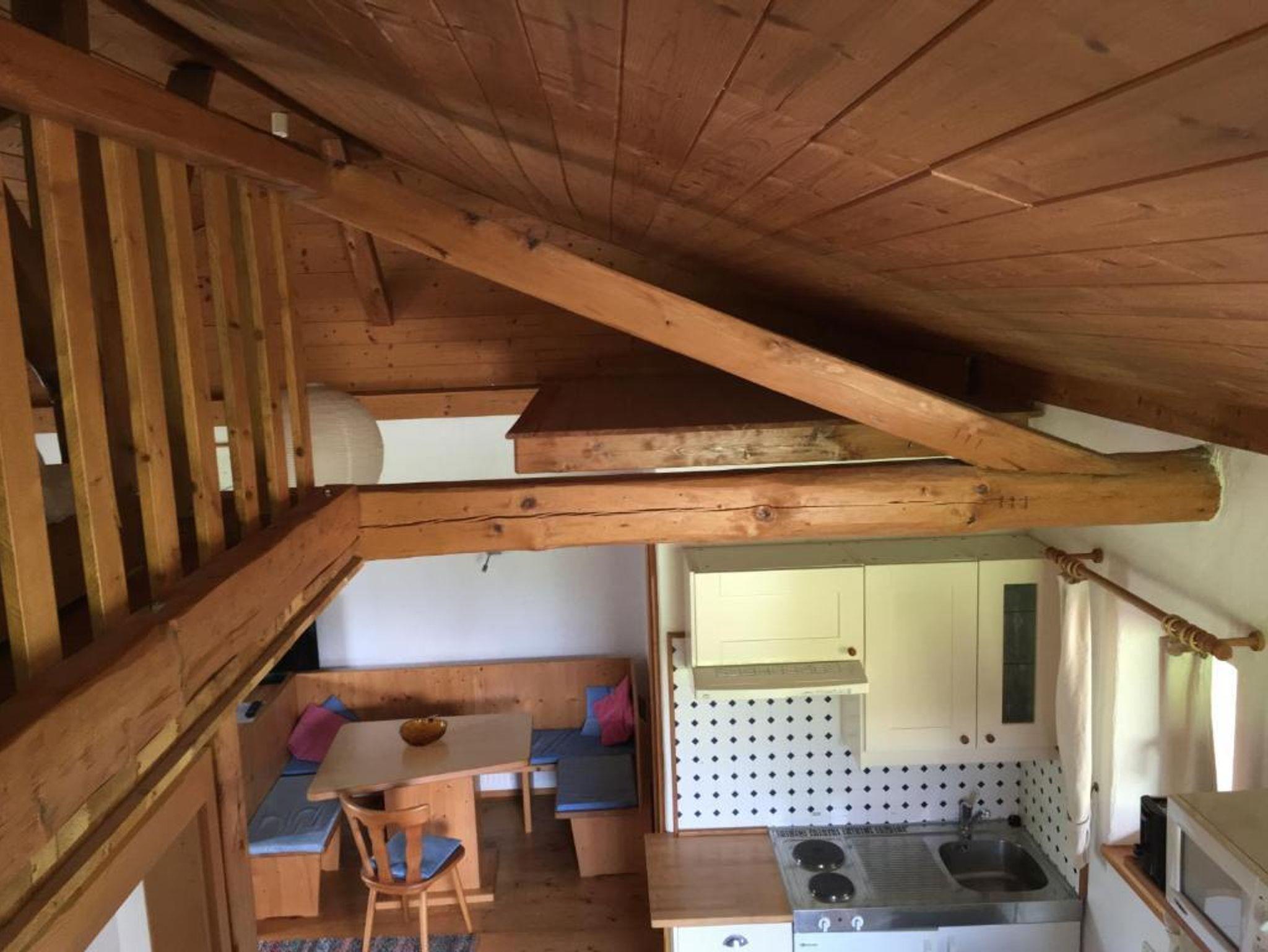 Gemütliche liebevoll eingerichtete Ferienwohnung mit einem Schlafzimmer und einer zum Wohnbereich hin offenen Schlafgalerie sowie einer Schlafcouch im Wohnbereich. Küchenzeile und Esstisch. Dusche/WC und Balkon.