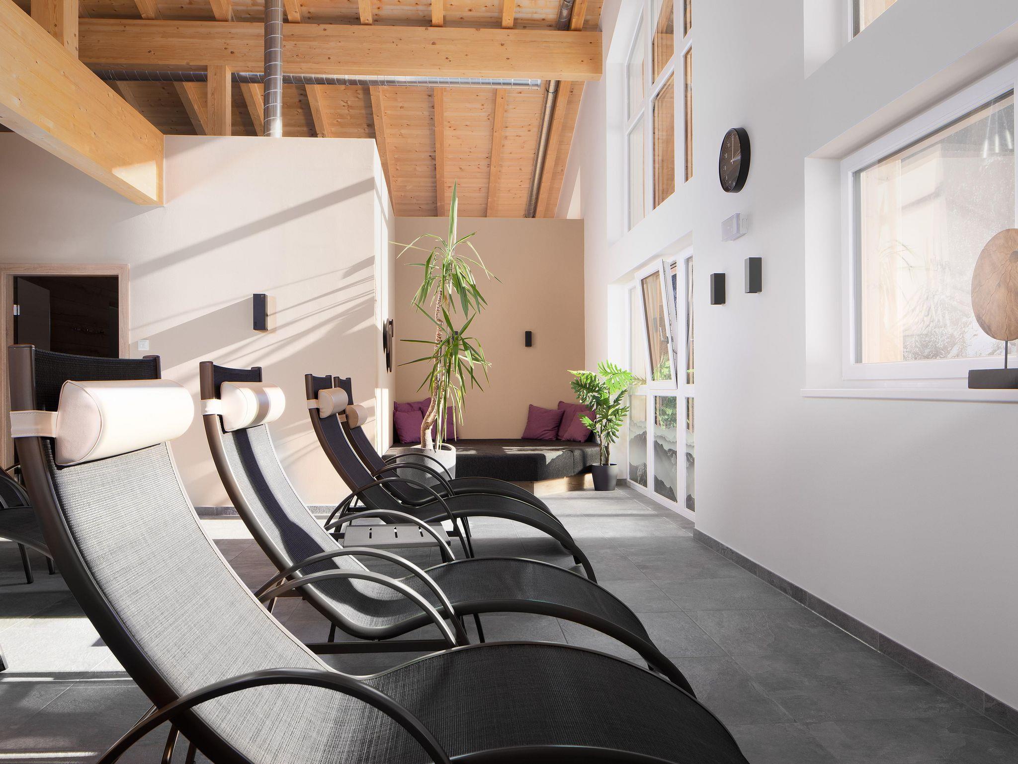 Entspannen und Kraft tanken können Sie im neuen Panorama-Saunabereich mit Infrarot-Gondel, finnischer Sauna & Bio-Kräutersauna sowie im Ruhebereich mit Dachterrasse (Sommer).