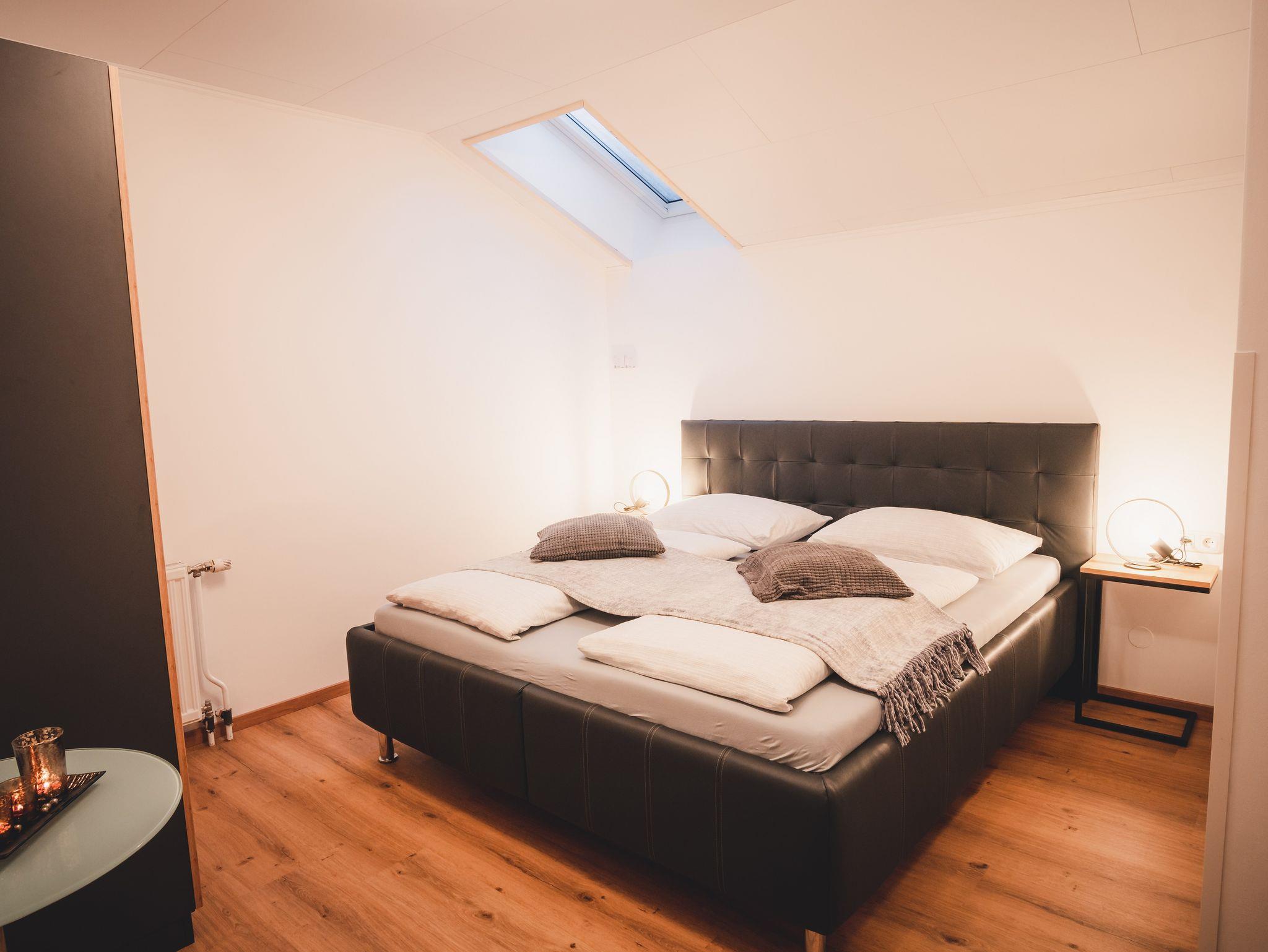Unser Appartement Rauher Kamm bietet Platz für 4-5 Personen. Ein getrenntes Schlafzimmer mit Doppelbett und ein Wohn-/Schlafbereich mit Doppelbett und Schlafsofa. Beide Zimmer verfügen über FlatTVs, separate Badezimmer und WCs und sind mit Bettwäsche und Handtüchern ausgestattet. WLAN ist inkludiert.