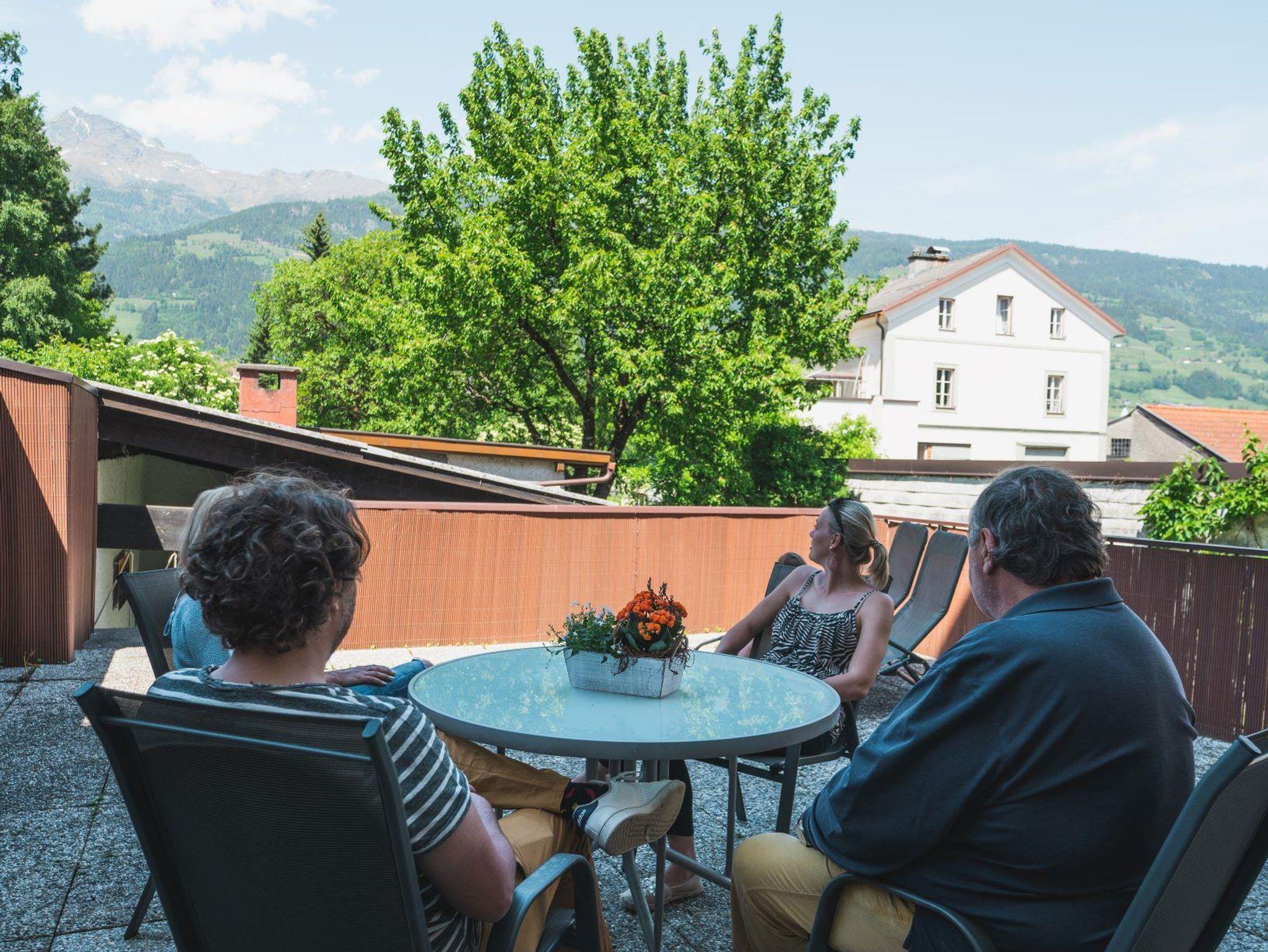 Nach einem Tag beim Wandern, Biken oder Skifahren können sie ihren Tag entspannt im Gemeinschaftsgarten/ Pergola mit offenem Kamin ausklingen lassen.