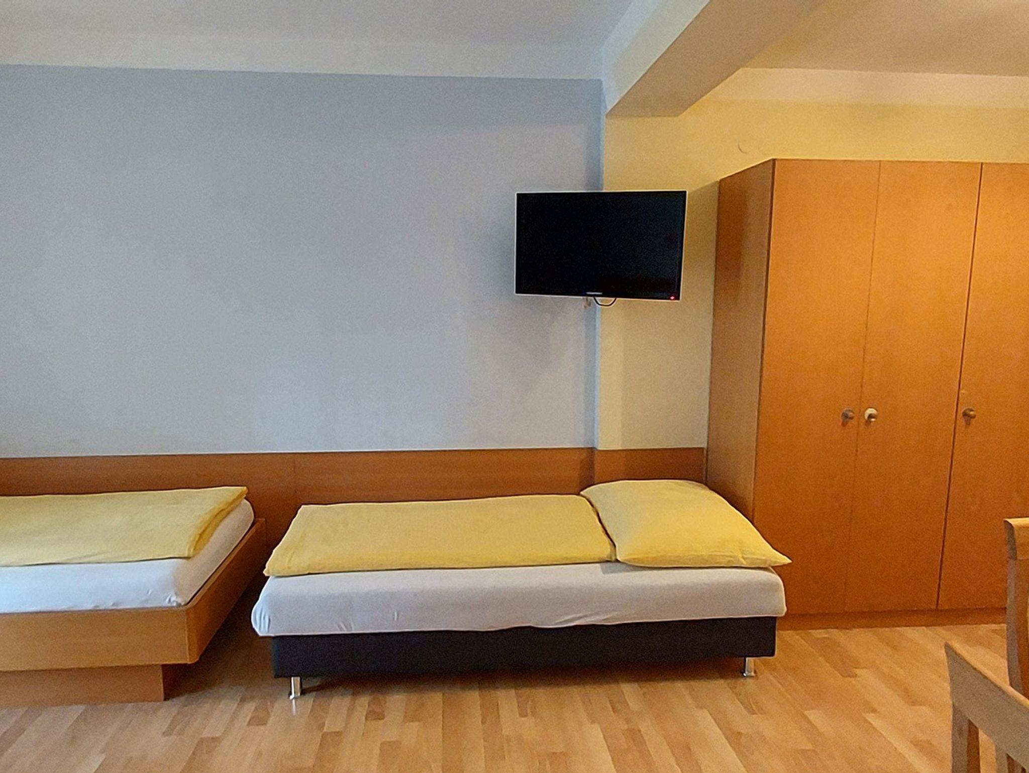 Das helle und geräumige Vierbettzimmer mit 30qm bietet einen traumhaften Blick auf die Berge. Es verfügt entweder über ein Doppelbett und zwei Einzelbetten oder ist mit zwei Doppelbetten ausgestattet. Ein Kleiderschrank und TV befinden sich ebenfalls im Zimmer. Das Badezimmer mit Dusche oder Badewanne, WC und Fön rundet das Gesamtbild ab. Auf dem Balkon können Sie entspannte Abende verbringen. Haustiere sind gestattet. Möglicherweise fallen Gebühren an. Das WLAN und den Parkplatz vor dem Haus können Sie kostenfrei nutzen.