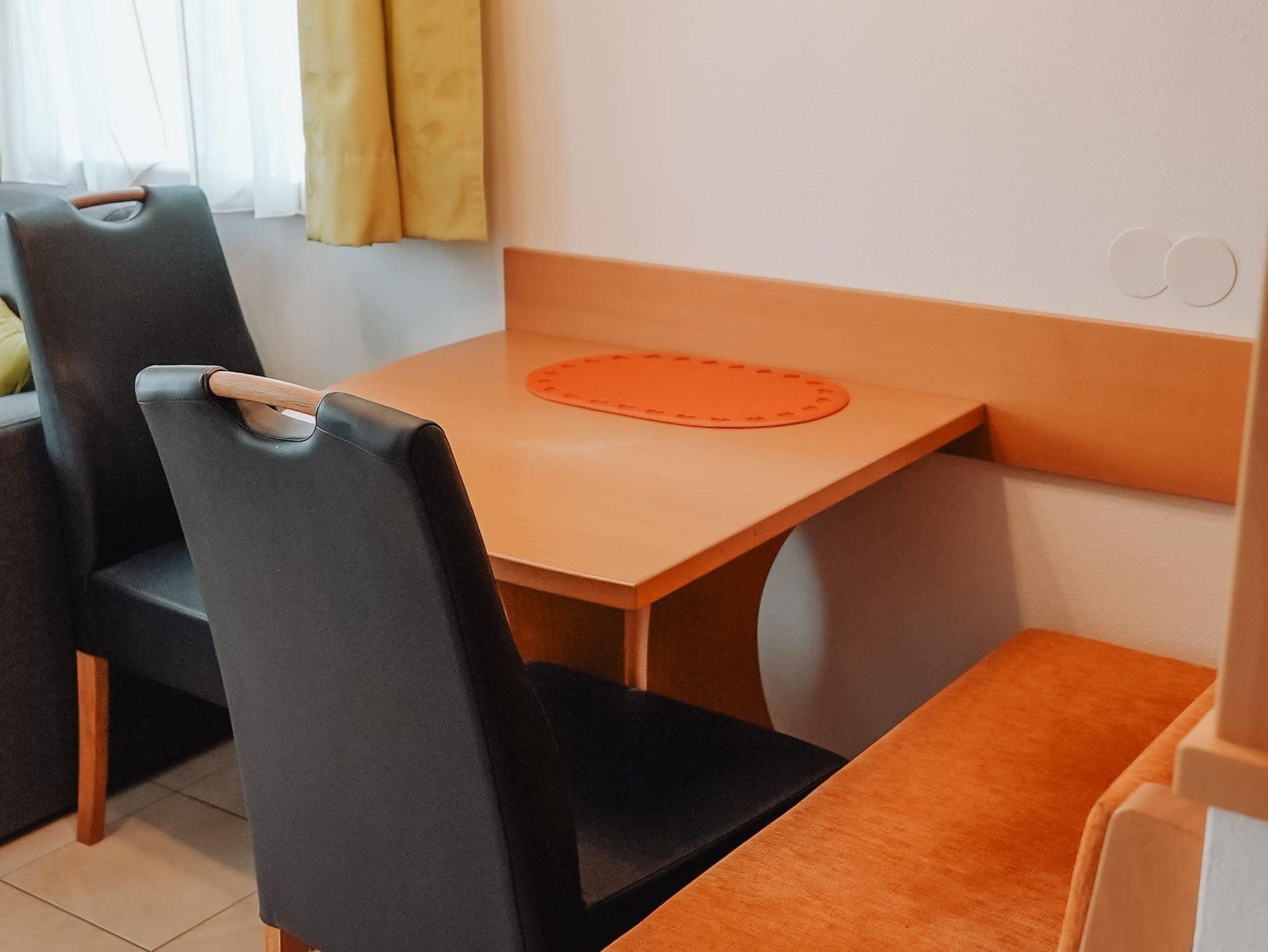 Das gemütliche Schwalbenwand Studio im Untergeschoss bietet 45 m² für 2 Personen. Es verfügt über einen Wohn-/Essbereich mit abgetrenntem Schlafbereich, eine voll ausgestattete Küche, ein modernes Bad, separates WC sowie eine sonnige Terrasse mit Gemeinschaftsgarten und Bergblick.
