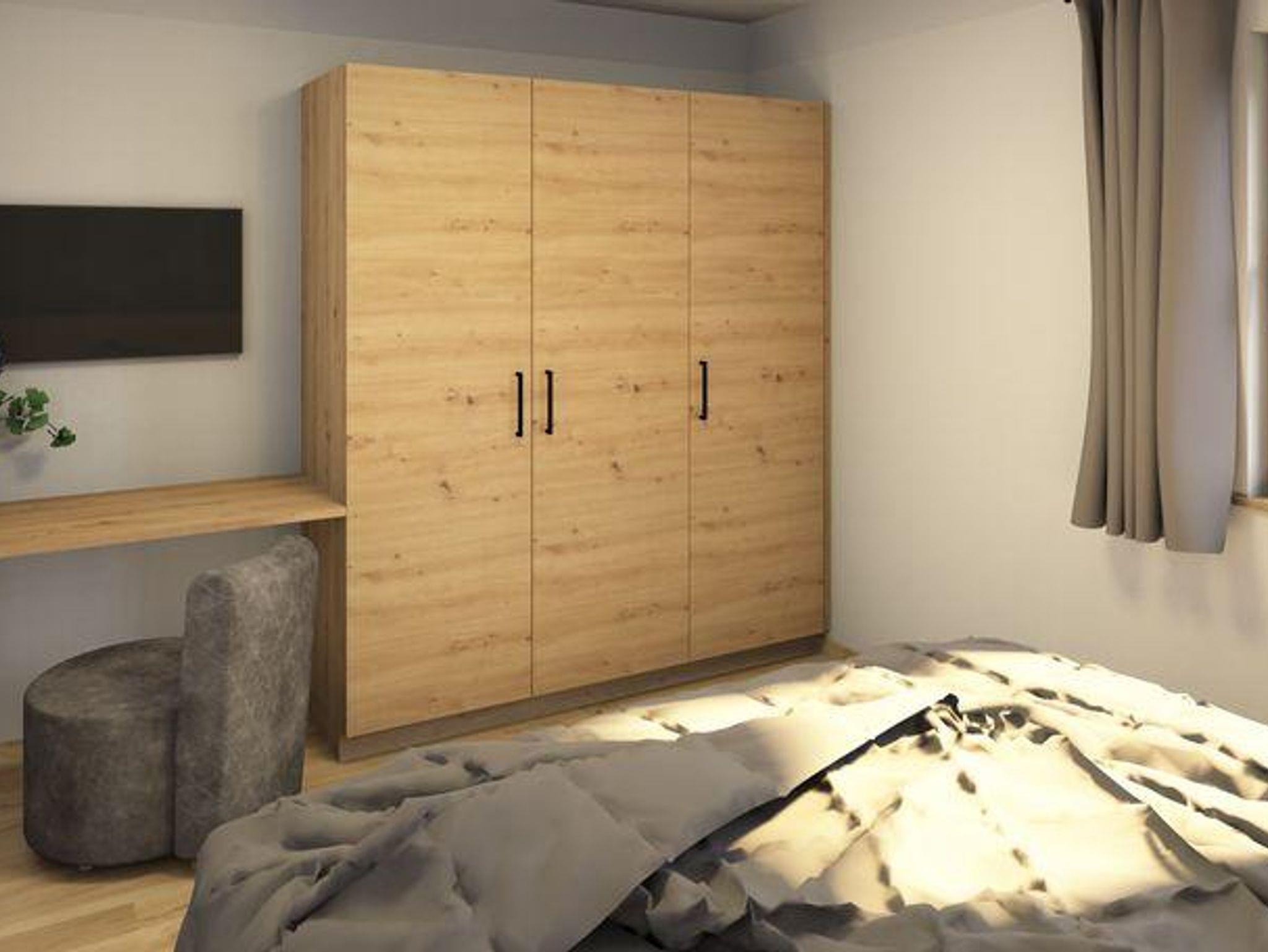 • Durch die Teleskopschiebetür kann der Wohnbereich komplett abgetrennt werden – so entsteht bei Bedarf ein drittes, vollwertiges Schlafzimmer