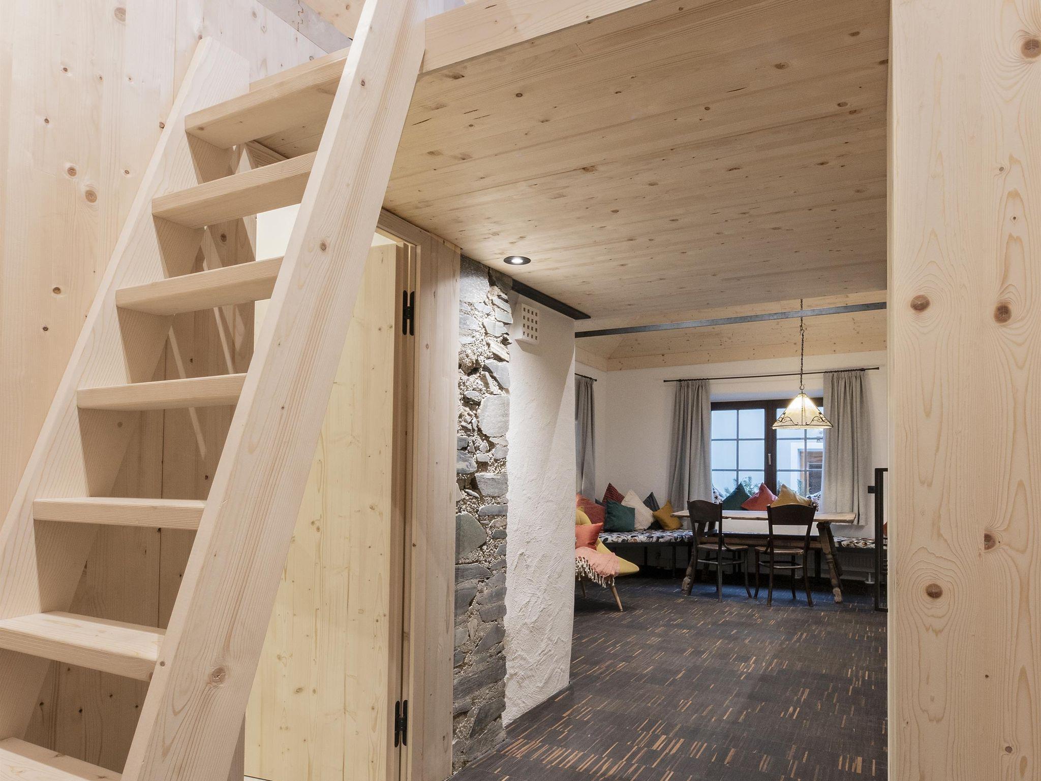 Ausgezeichnet mit 4sEdelweiß, architektonisch einzigartig, komfortabel, für 10 Pers. (7 bzw. 3 Pers. in 2 Appartements) BergsteigerSEIN (SEIN im Dialekt=eine Bleibe haben) SauWOHL (ehem. Schweinestall)