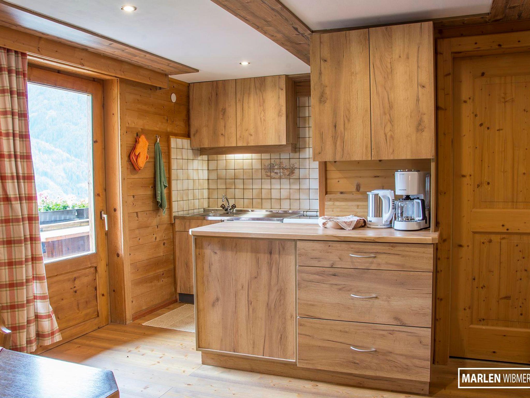 FeWo Virgen ist ausgestattet (im rustikalem Stil mit viel Holz) mit Wohnküche (neuem Küchenblock) u. Südbalkon, neu renovierter Dusche/WC, Doppelbettzimmer, Zweibettzimmer Zedlach mit Zusatzbad, Garderobe und Abstellraum. Tafel- und Kochgeschirr, Handtücher, Föhn und Bettwäsche sind ausreichend vorhanden.