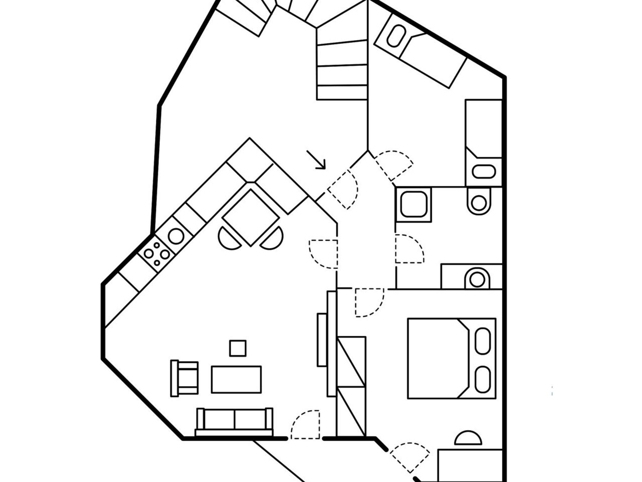 Wohnküche, 2 Schlafzimmern, Dusche/WC, Sat-TV, WLAN, Parkplatz.