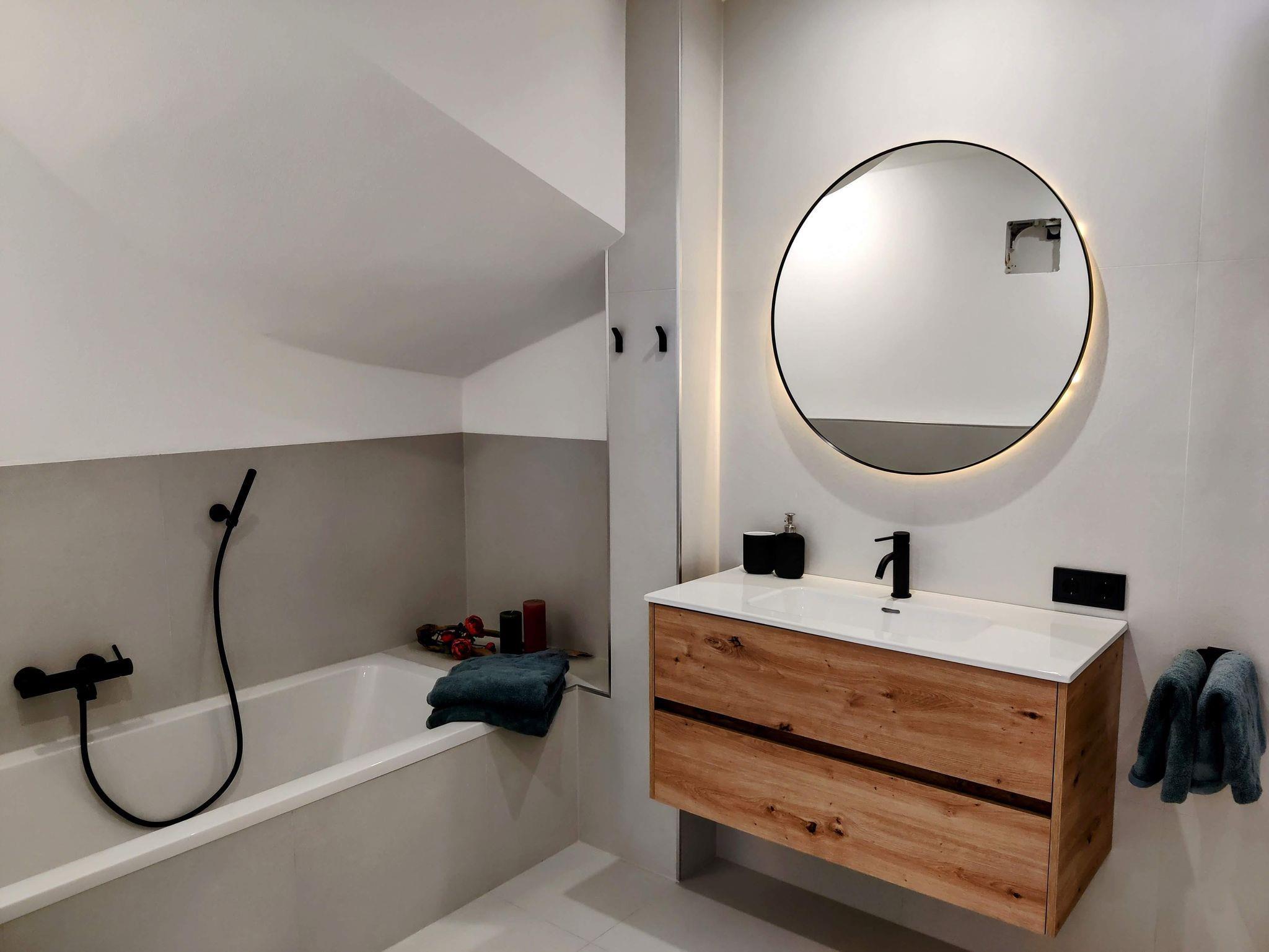 Badewanne: Nach einem Tag voller Wandern, Skifahren oder Erkunden können Sie sich im Badezimmer mit einer gemütlichen Badewanne entspannen.