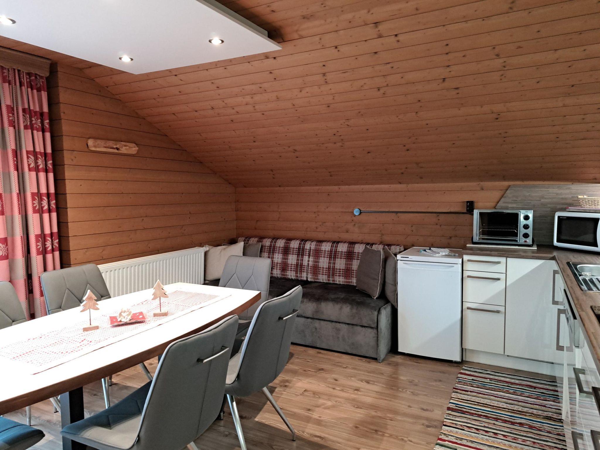"Schragl", 3-Zimmer-Wohnung 65 m2 im 2. Stock. Gemütlich und mit viel Holz eingerichtet: 2 Zimmer, jedes Zimmer mit 1 Diwanbett, 1 Doppelbett und Waschbecken. Ausgang zum Balkon. Wohnküche (Backofen, Geschirrspüler, 4 Glaskeramikplatten, Toaster, Wasserkocher, Mikrowelle, elektrische Kaffeemaschine) mit Esstisch und Sat-TV. Ausgang zum Balkon. Dusche, sep. WC. Holzdielenboden. Balkon. Zur Verfügung: Kinderhochstuhl, Babybett. Internet (Wireless LAN, gratis). Bitte beachten: Nichtraucher-Unterkunft. Rauchmelder, Feuerlöscher. Die Wohnung ist zum Treppenhaus offen.