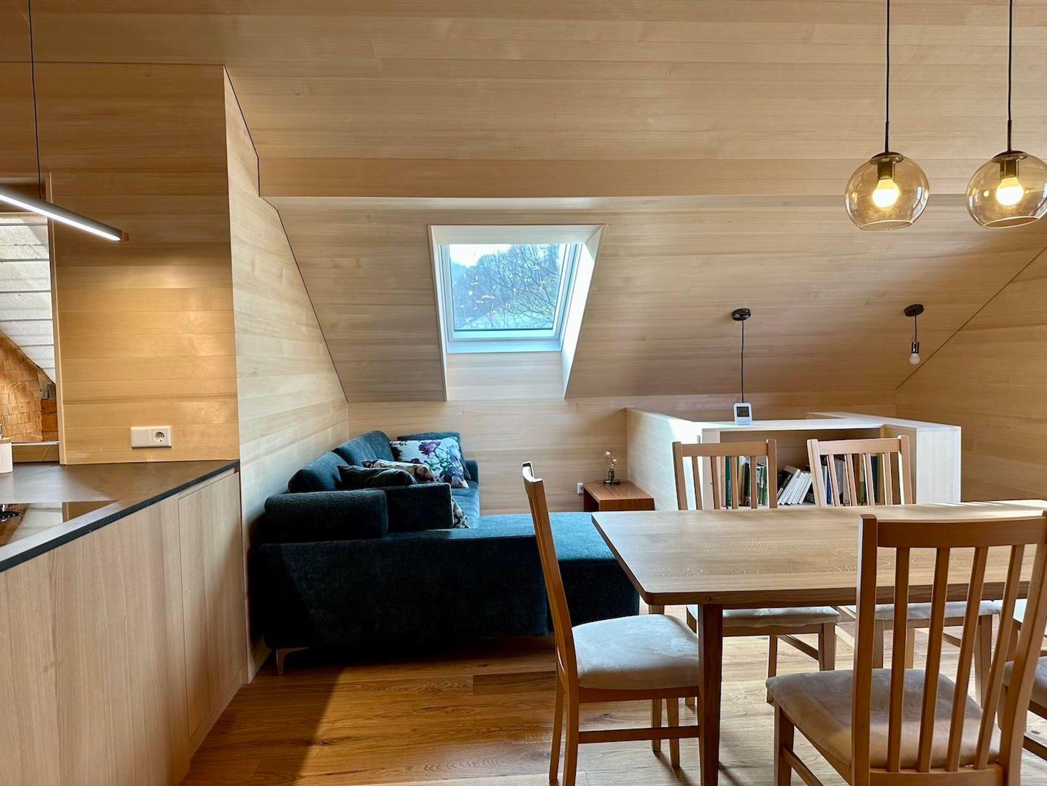 Die liebevoll neu errichtete Ferienwohnung (ca. 60 m2) ganz in Holz ist voll ausgestattet und bietet Platz für bis zu 4 Personen (2 Doppelzimmer). Ihr werdet dort alles finden, was das Herz begehrt – außer einem Fernseher, damit ihr richtig abschalten könnt…