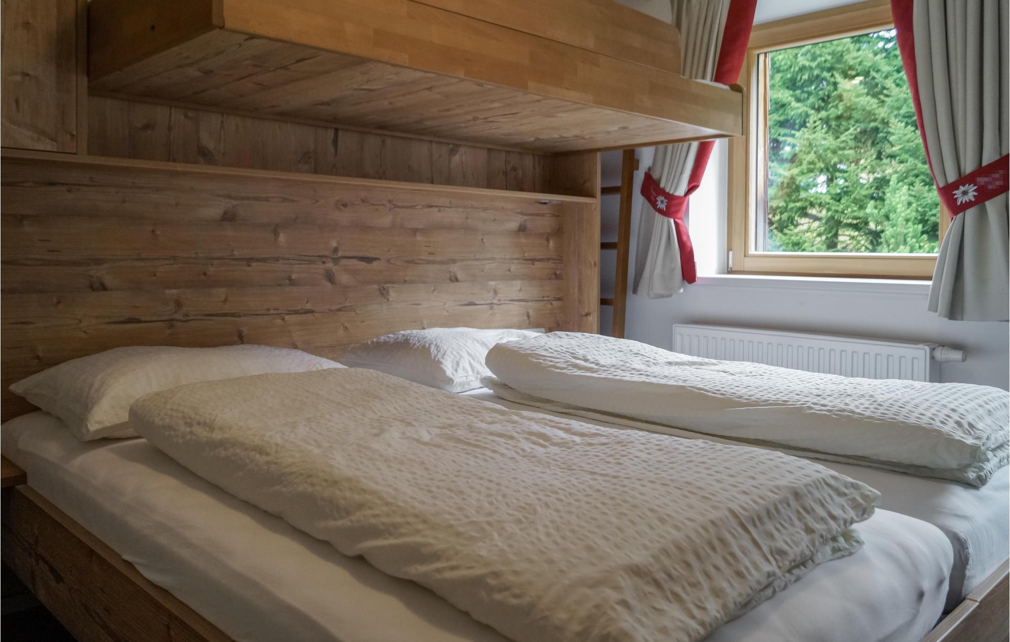 Schlafzimmer (nr. 1) - 2 Schlafmöglichkeiten. (Doppelbett(en)). 1 Schlafmöglichkeit. (Etagenbett).