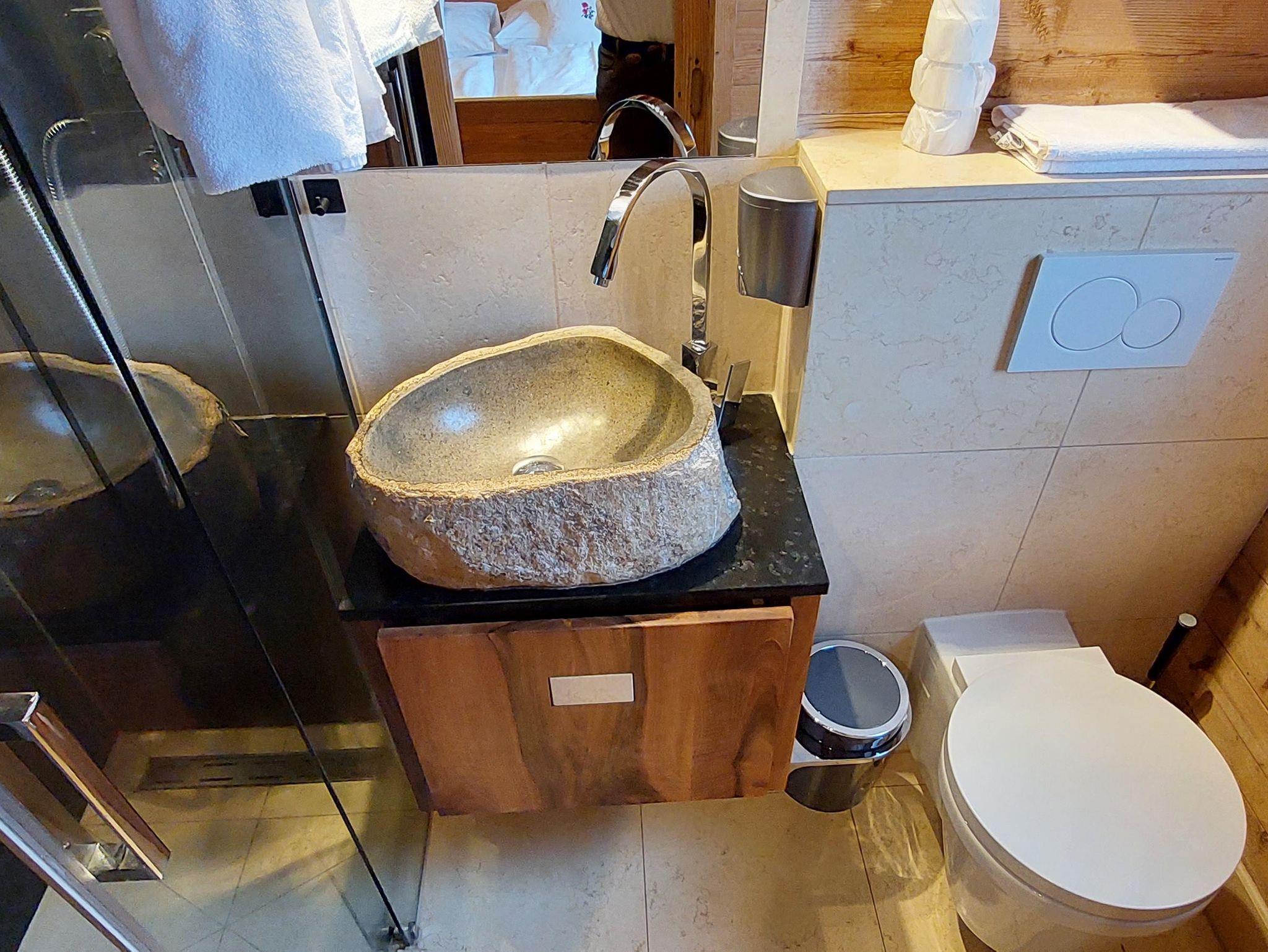 ? Wellnessbereich im Alm-Hütten-Stil: Infrarotkabine, Massagesessel, Fußmassage und Wellness-Terrasse