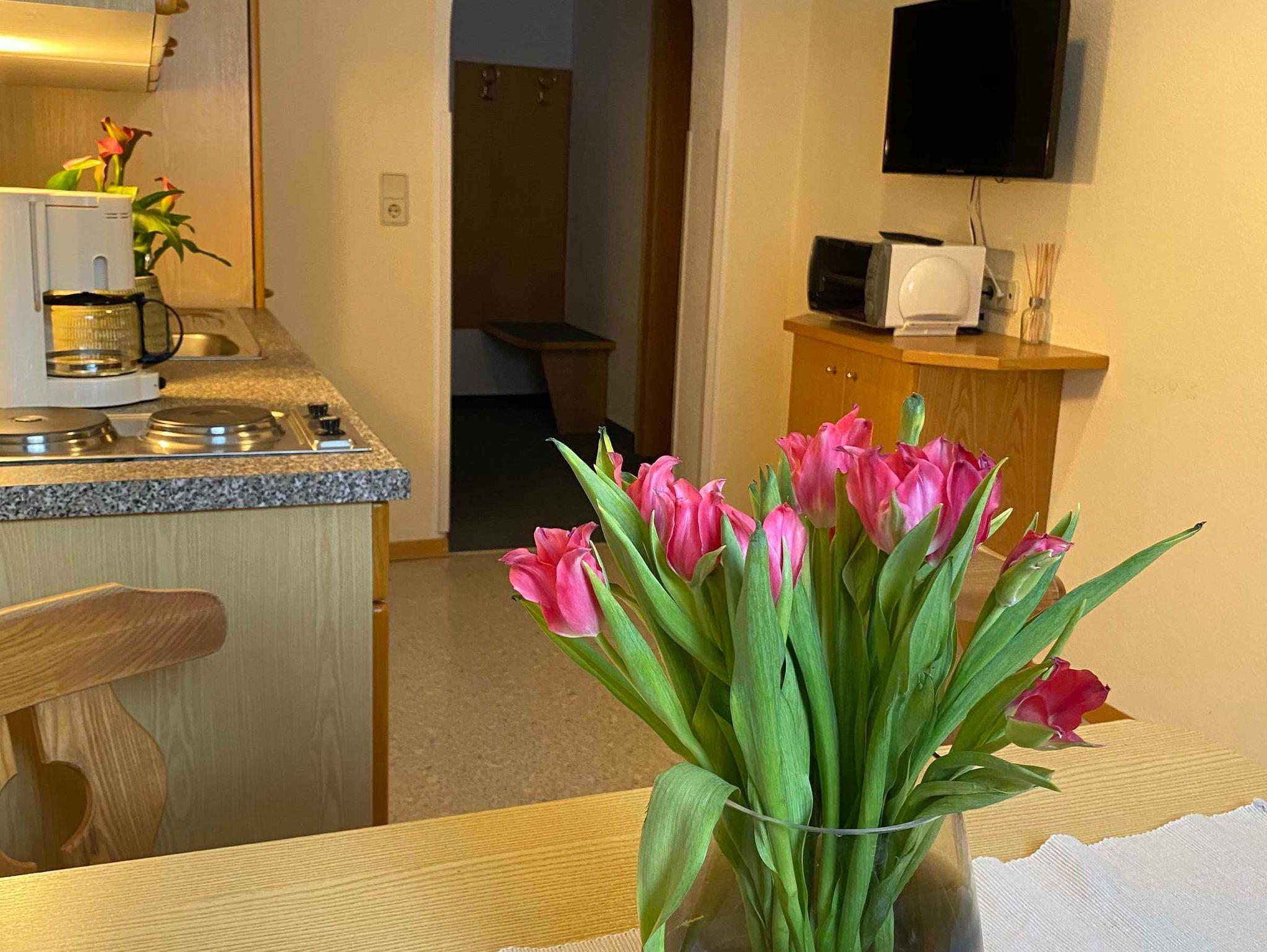 Unser Haus befindet sich in sehr ruhigen doch zentralen Lage. Wir bieten Ihnen 3 gemütlich und modern eingerichtete Ferienwohnungen und wir sind für unseren Komfort mit 4 Edelweiß ausgezeichnet. In der großen Wohnungapart Frudger, für 4-5 Personen, sind 2 getrennte Schlafzimmer mit jeweils DU/WC und Wohnküche.