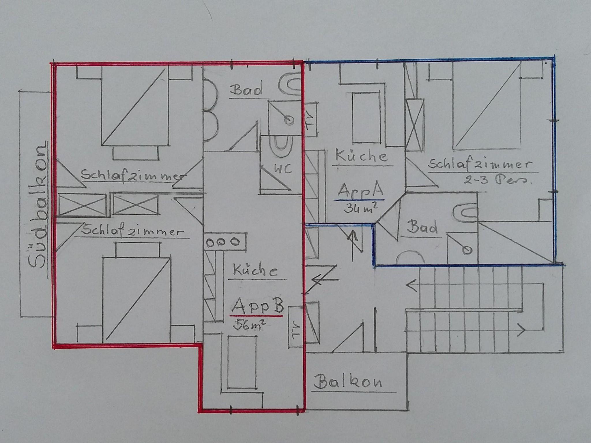 Die gemütliche Wohnung A bietet Platz für bis zu 3 Personen und verfügt über 1 Schlafzimmer mit Doppelbett und Einzelbett, 1 Wohnküche mit Esstisch, TV und WLAN, 1 Badezimmer mit Dusche und WC.