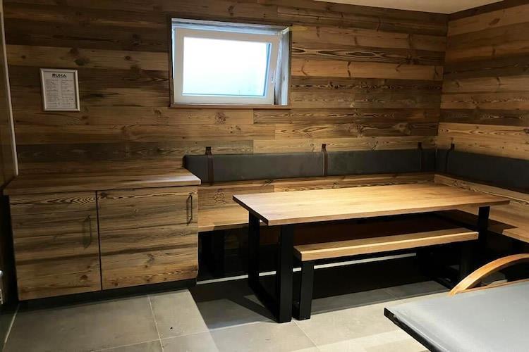 Parterre: (Schlafzimmer(Doppelbett, TV, Terrasse), Schlafzimmer(Doppelbett, TV, Terrasse), Schlafzimmer(Etagenbett, Etagenbett), Badezimmer(Dusche, Waschbecken, Toilette), Terrasse) In der 1. Etage: (Wohnzimmer(TV, Balkon), offene Küche(Kochherd, Spülmaschine, Tiefkühlschrank, Kühl-/Gefrierkombination), Schlafzimmer(Doppelbett, TV), Badezimmer(Dusche, Waschbecken, Toilette)) Keller: (Ruheraum(Sauna, Toilette, Liegestühle), Skikeller) Freizeitraum, Kaffeemaschine, Babybett, Waschmaschine, Skischuhheizung, Garten, Liegen, Parkplatz, Bügelbrett, Gesellschaftsspiele