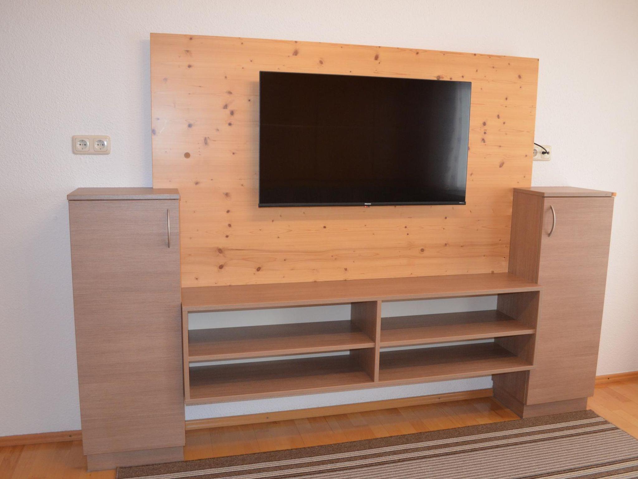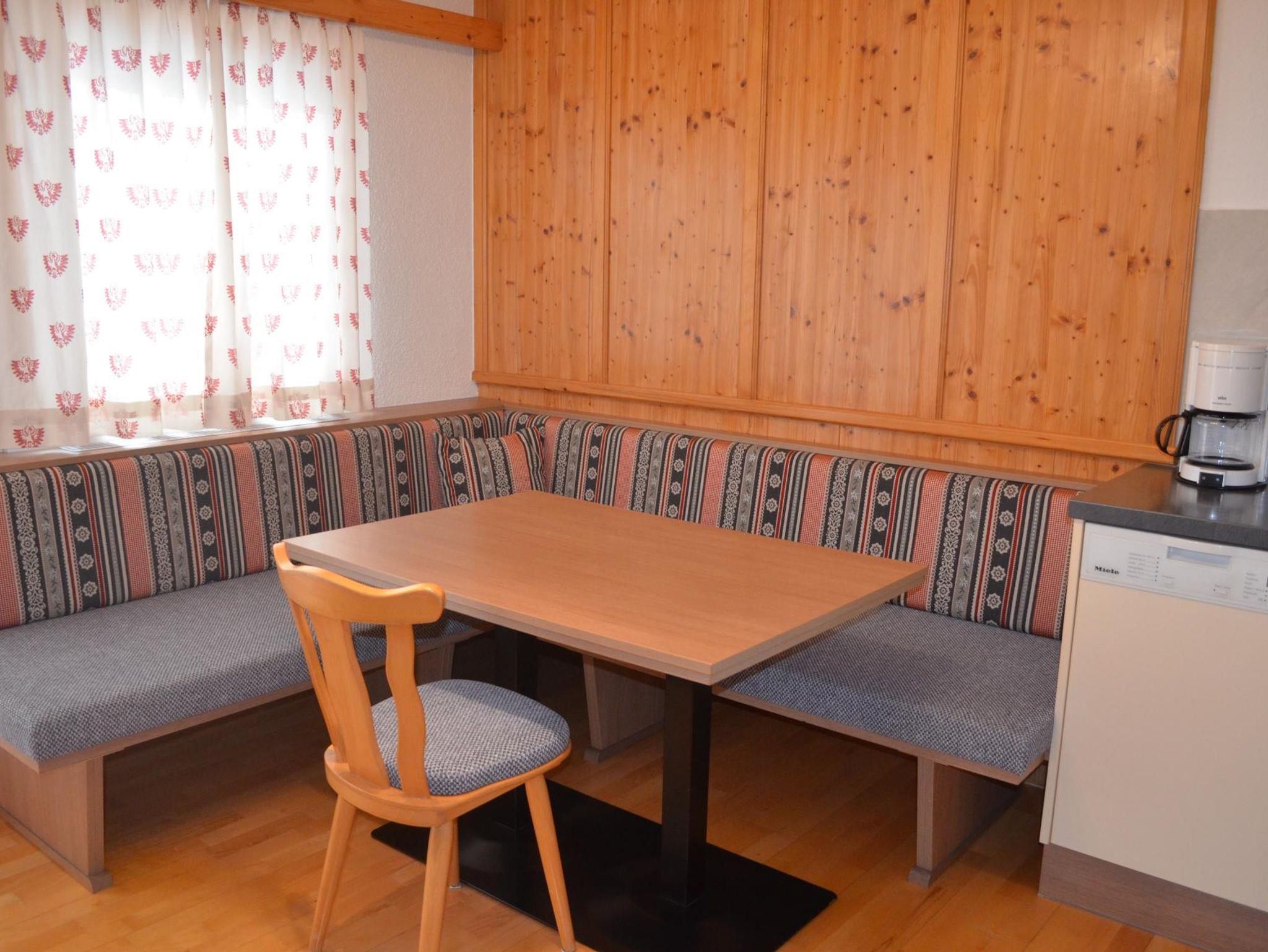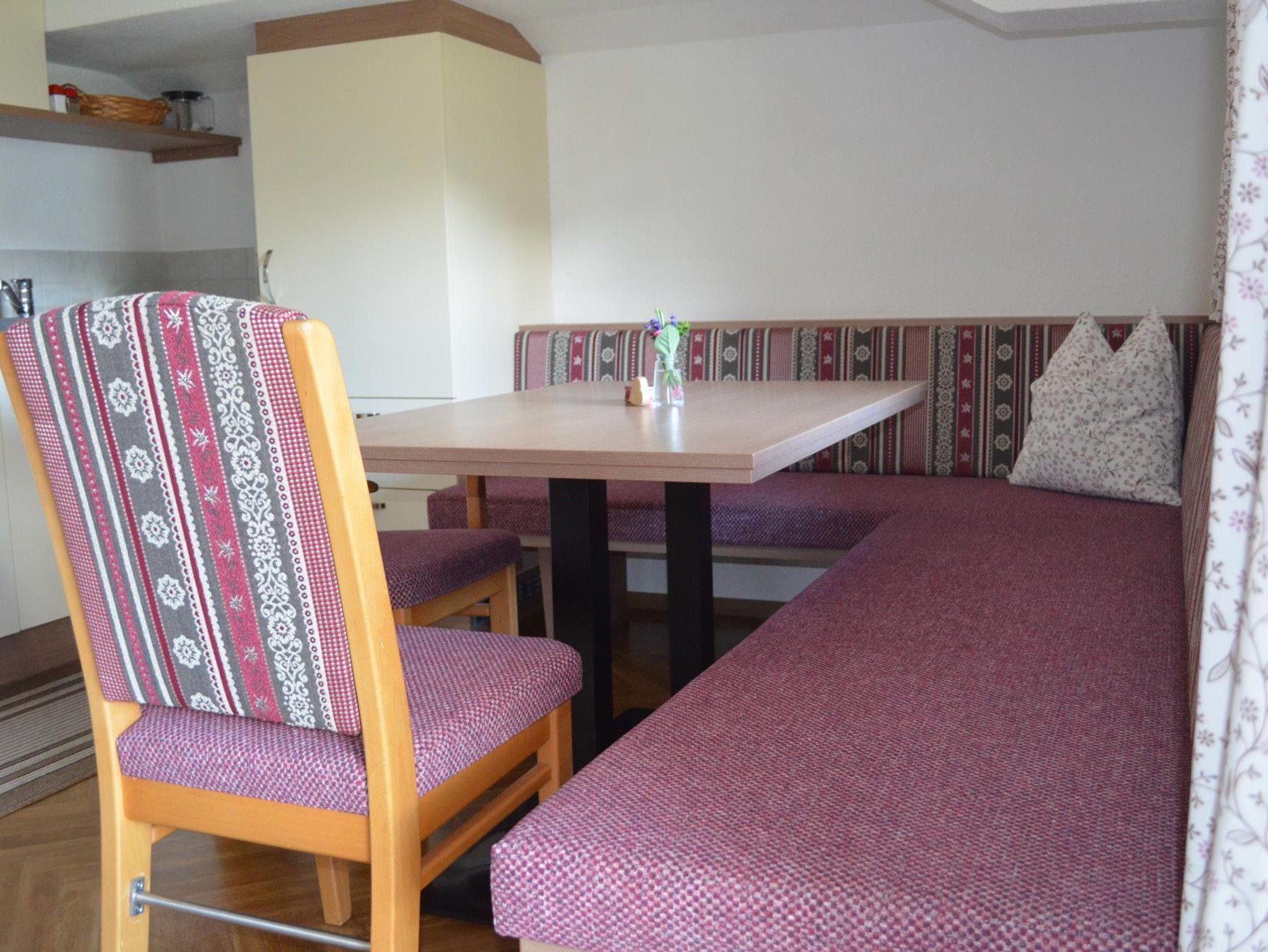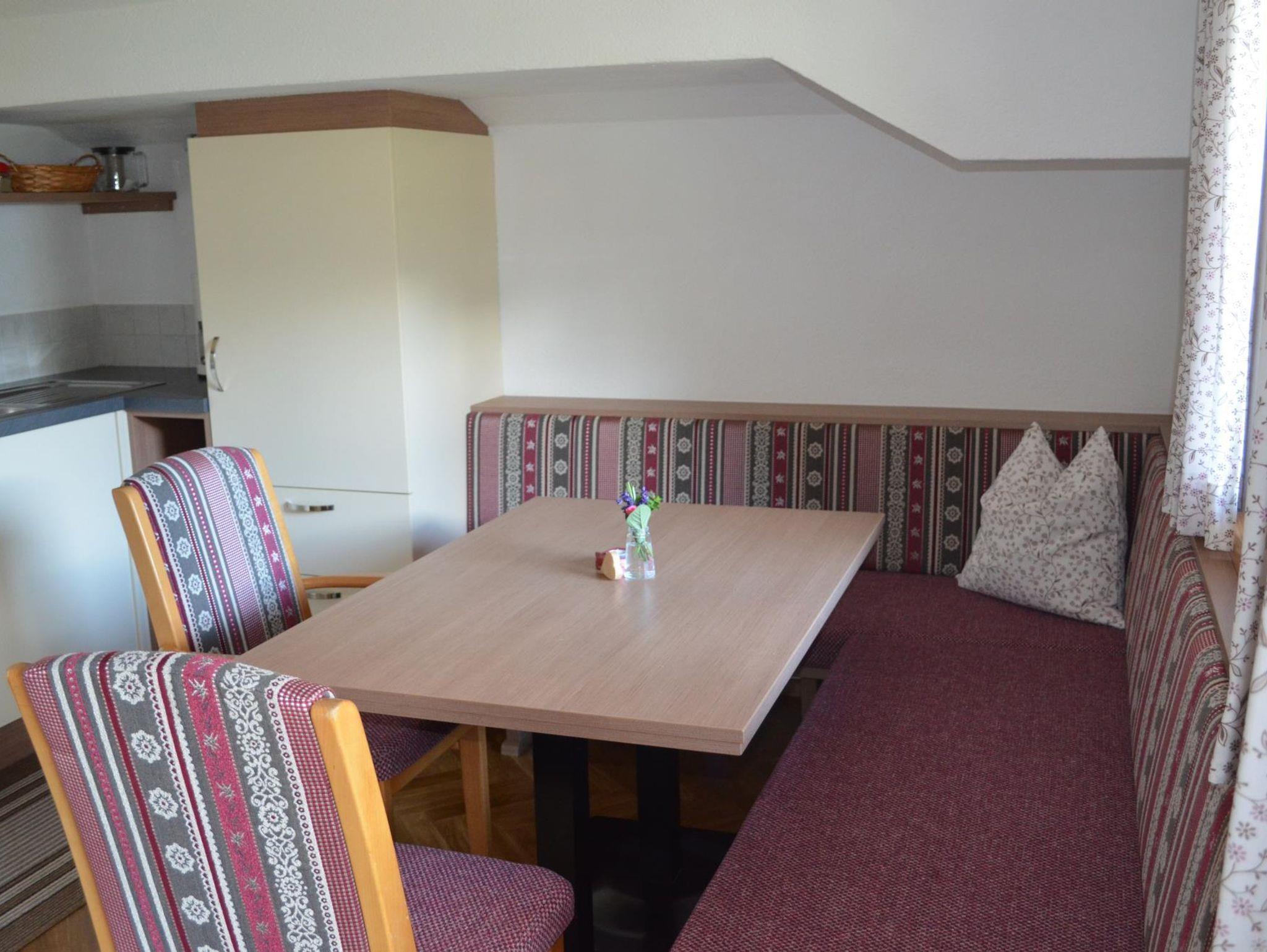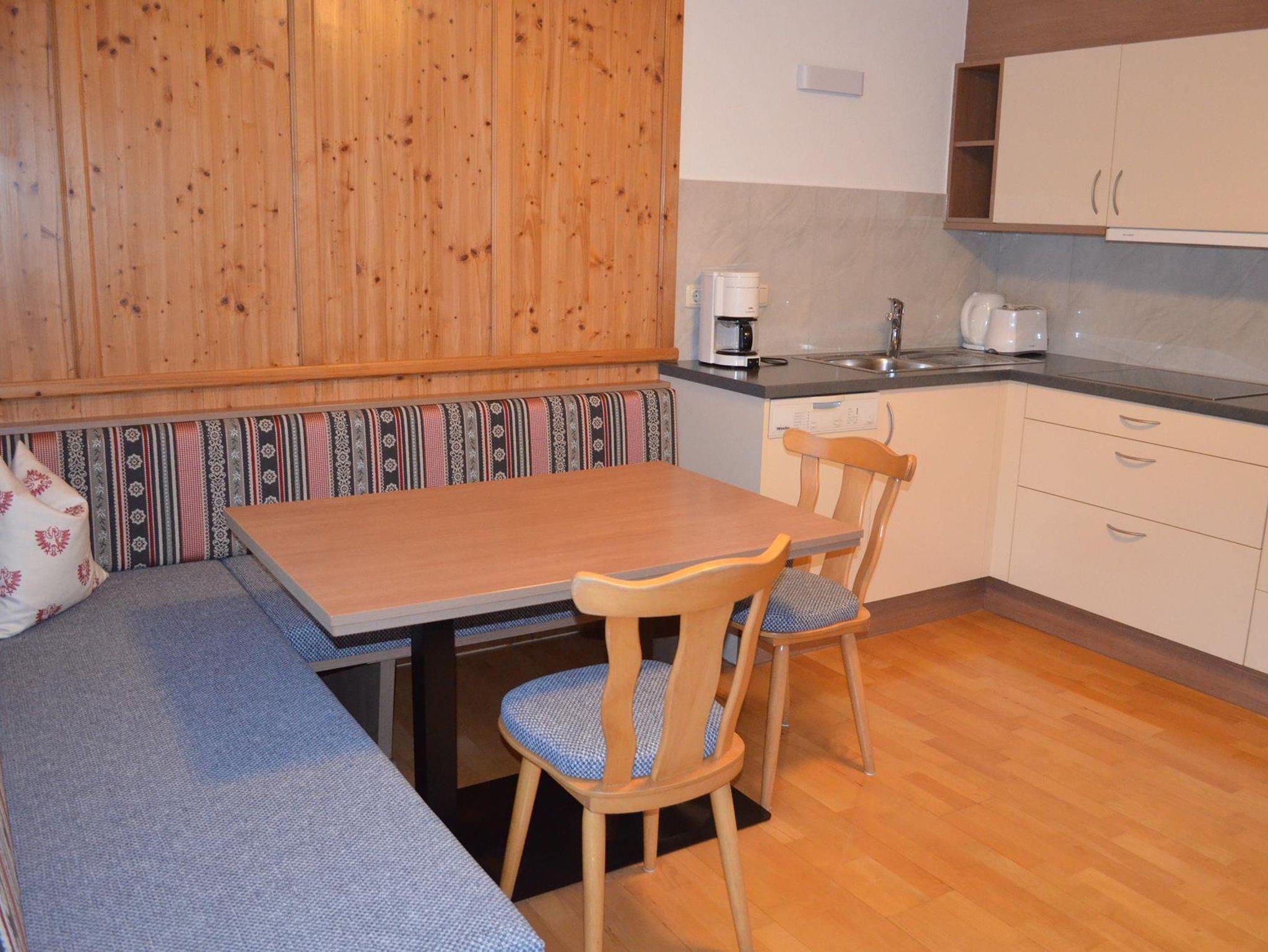 Auch in der Wohnküche: Flat TV und eine gemütliche Sitz-Essecke mit großem Esstisch.