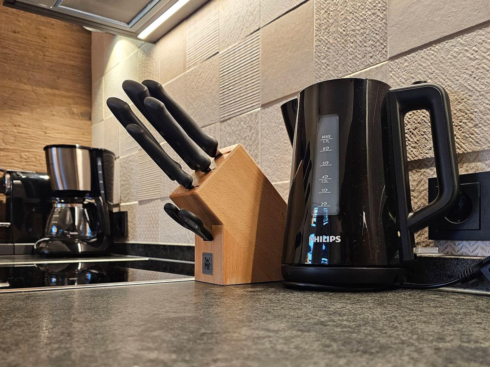 Zur Ausstattung gehören eine gemeinschaftlich genutzte Waschmaschine und ein Wäschetrockner, was längere Aufenthalte besonders angenehm macht. Die Küche ist mit modernen Annehmlichkeiten wie einer Kapsel-Kaffeemaschine, einem Wasserkocher und einer Spülmaschine ausgestattet, die für zusätzlichen Komfort sorgen. Der Balkon lädt dazu ein, die ruhige Atmosphäre zu genießen.