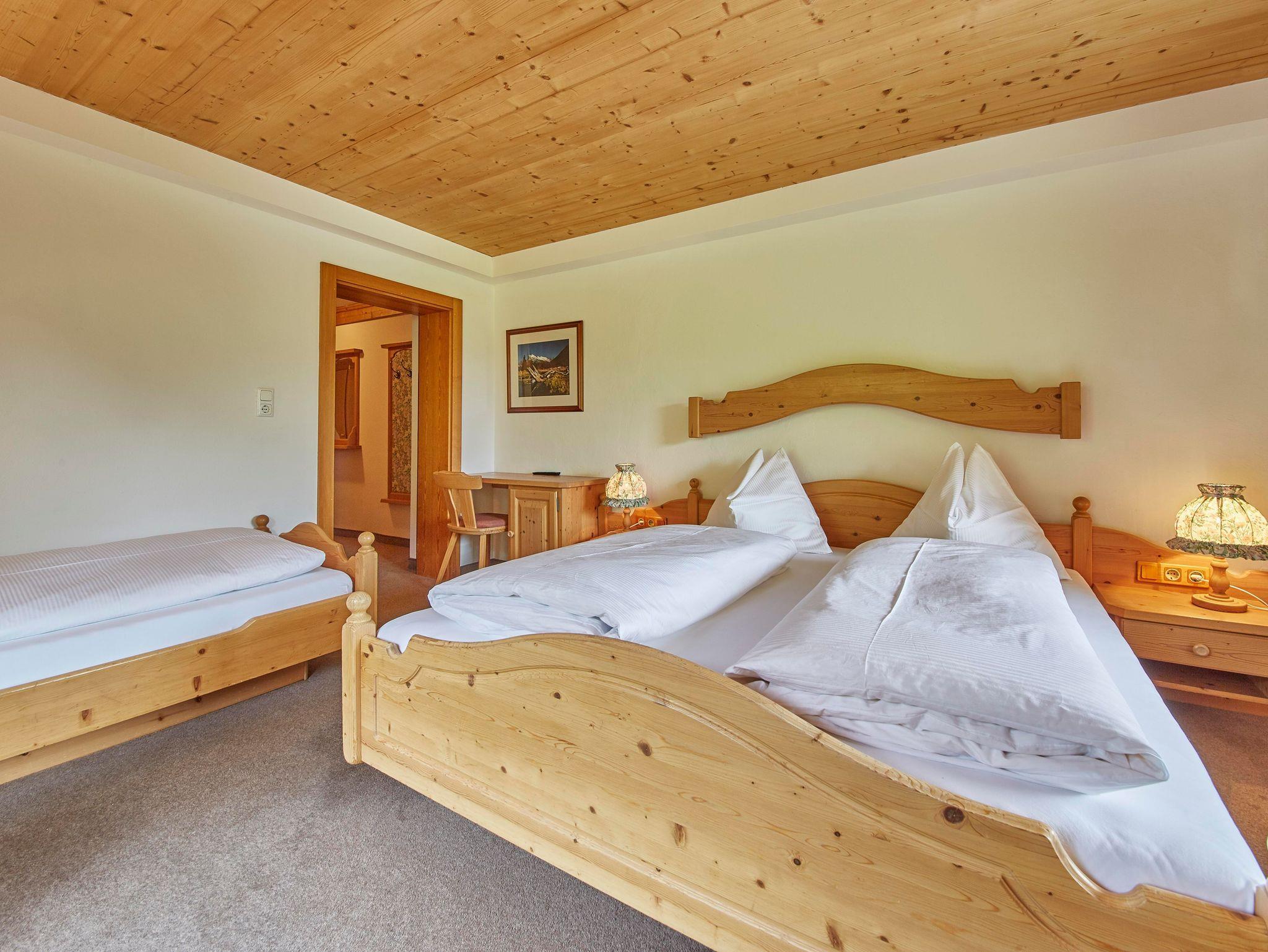 Willkommen in der Pension Enzian Dreibettzimmer 8, Deinem perfekten Rückzugsort für einen erholsamen Aufenthalt für 3 Personen. Der 26m² Raum bietet nebst bequemen Doppelbett und Einzelbett ein Bad mit Dusche + Toilette. Vom Balkon besteht ein herrlicher Bergblick. Der Lift befindet sich direkt neben der Unterkunft. Morgens erwartet dich ein herrliches, reichhaltiges Frühstück vom Buffet. Außerdem kannst Du im hauseigenen Restaurant ab 16:00 Uhr köstlich speisen oder den Tag in der Holzsauna ausklingen lassen.