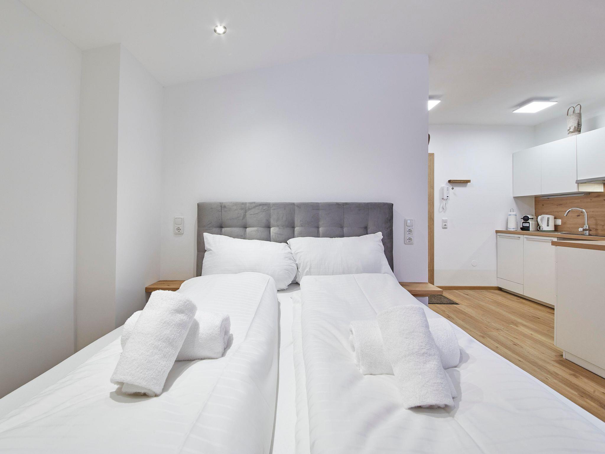 Unser Appartement Bergzeit stellt auf rund 25 m² eine kleine aber feine Unterkunft in ruhiger und doch zentraler Lage zwischen Saalbach und Hinterglemm dar. Die Wohnung bietet einen Wohnbereich mit Doppelbett, einem Essbereich, eine Küche sowie ein Badezimmer mit Dusche und WC. Ein Skiraum sowie ein Innenpool zur Gemeinschaftsnützung stehen unseren Gästen zur Verfügung. Ein kostenloser Parkplatz sind je nach Verfügbarkeit direkt hinter dem Gebäude vorhanden.