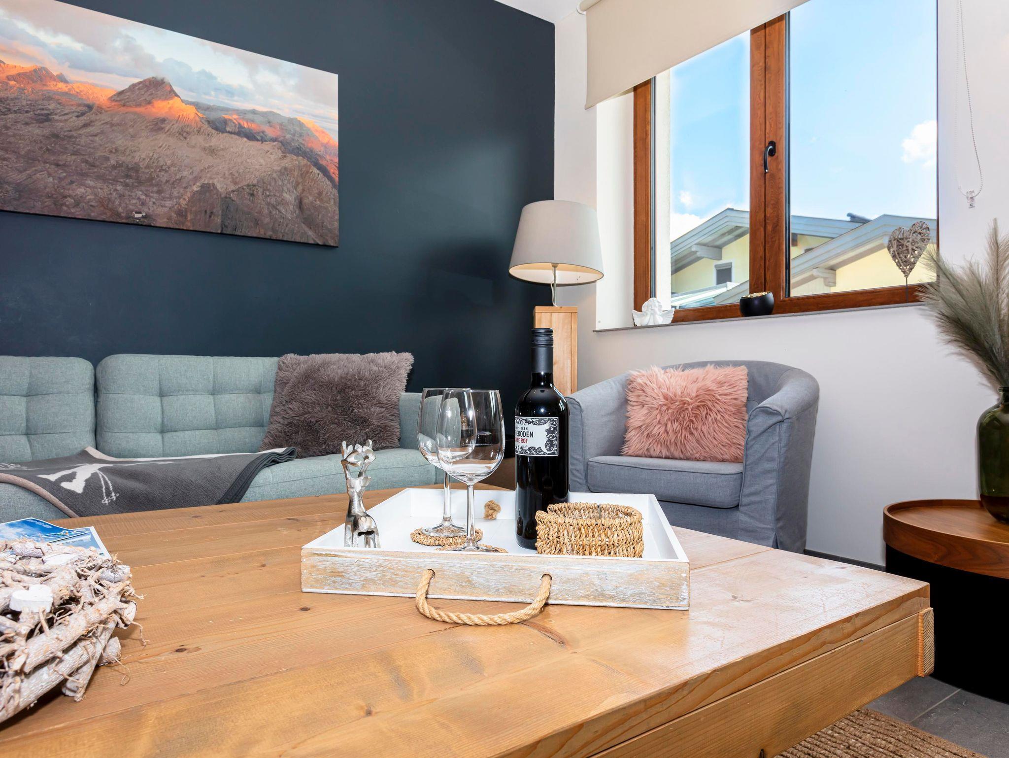 Die Ferienwohnung Natrun (72m²) hat einen eigenen Eingang und befindet sich im Erdgeschoss. Auf der Ostseite ist eine große Terrasse im Grünen, welche zum Entspannen einlädt. Wünderschöne Aussicht auf das Steinernen Meer.