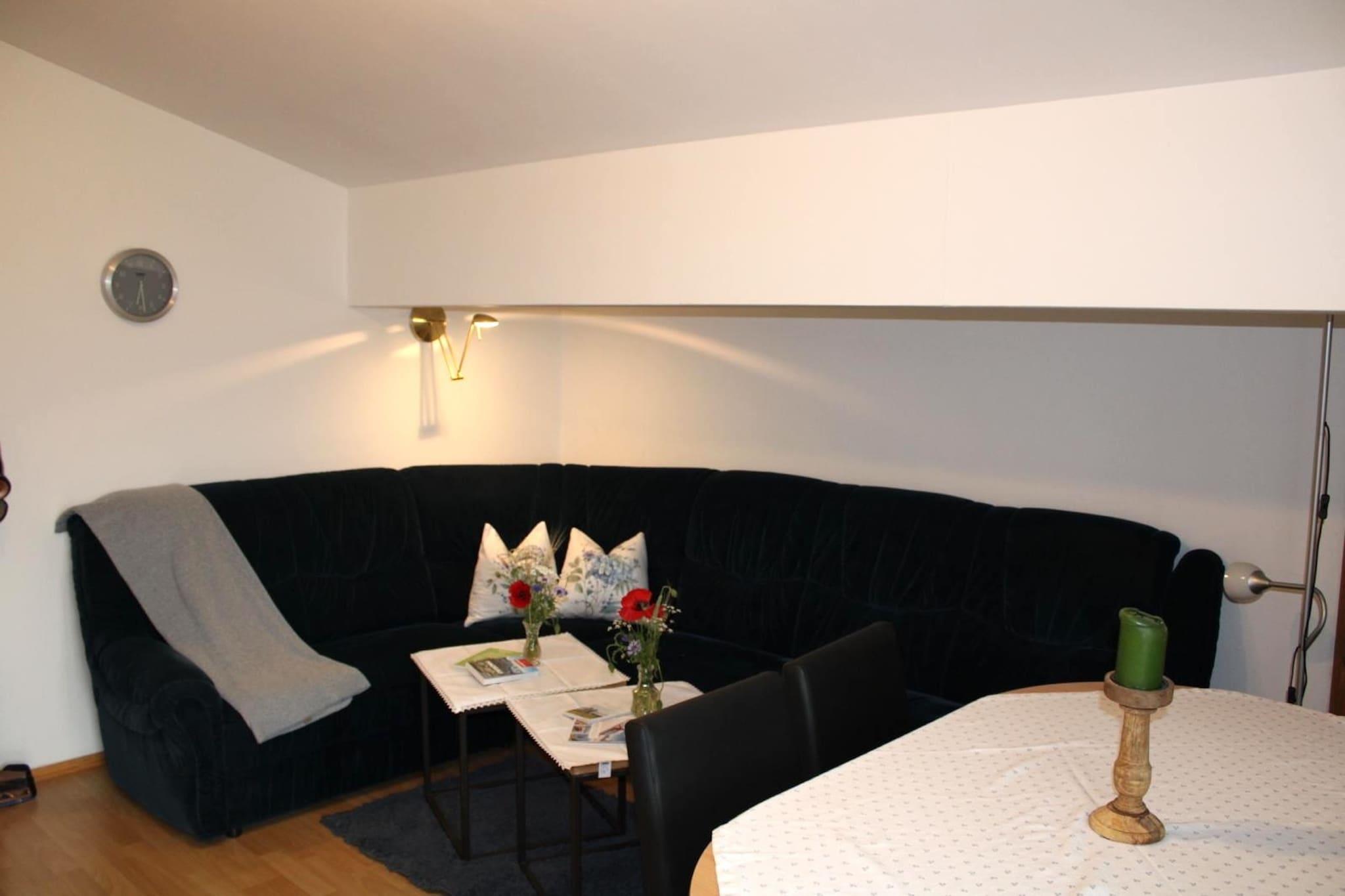 In der 2. Etage: (Wohnzimmer(Schlafcouch 1 Pers., TV(Flatscreen), Esstisch), offene Küche(Kochplatte, Wasserkocher, Dunstabzugshaube, Kaffeemaschine(Filter), Backofen, Mikrowelle, Spülmaschine, Kühlschrank, Kühl-/Gefrierkombination), Schlafzimmer(Einzelbett, Doppelbett, Waschbecken), Schlafzimmer mit Badezimmer(Einzelbett, Doppelbett, Dusche, Waschbecken), Badezimmer(Dusche, Waschbecken, Toilette), Balkon) Skikeller(Skischuhheizung), Fahrradabstellraum, Gartenmöbel, Parkplatz, Kinderbett