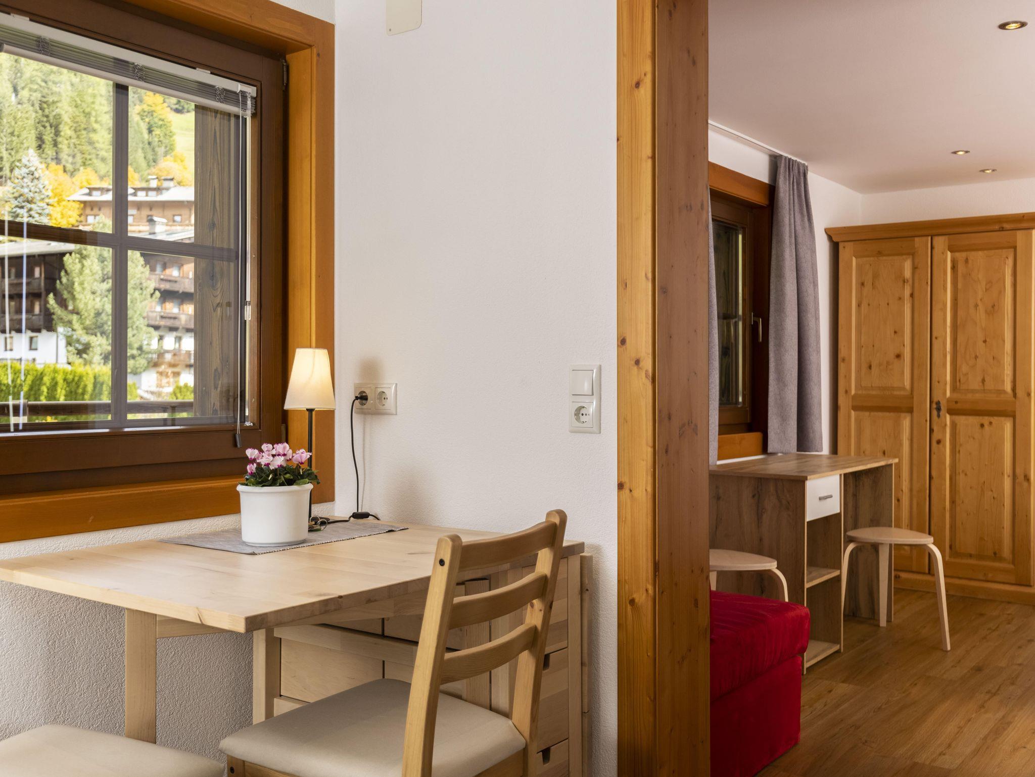 Die Ferienwohnung ist ca. 40 m² groß, besteht aus Küchenzeile mit Essecke, Schlafzimmer, Bad/WC und Balkon.