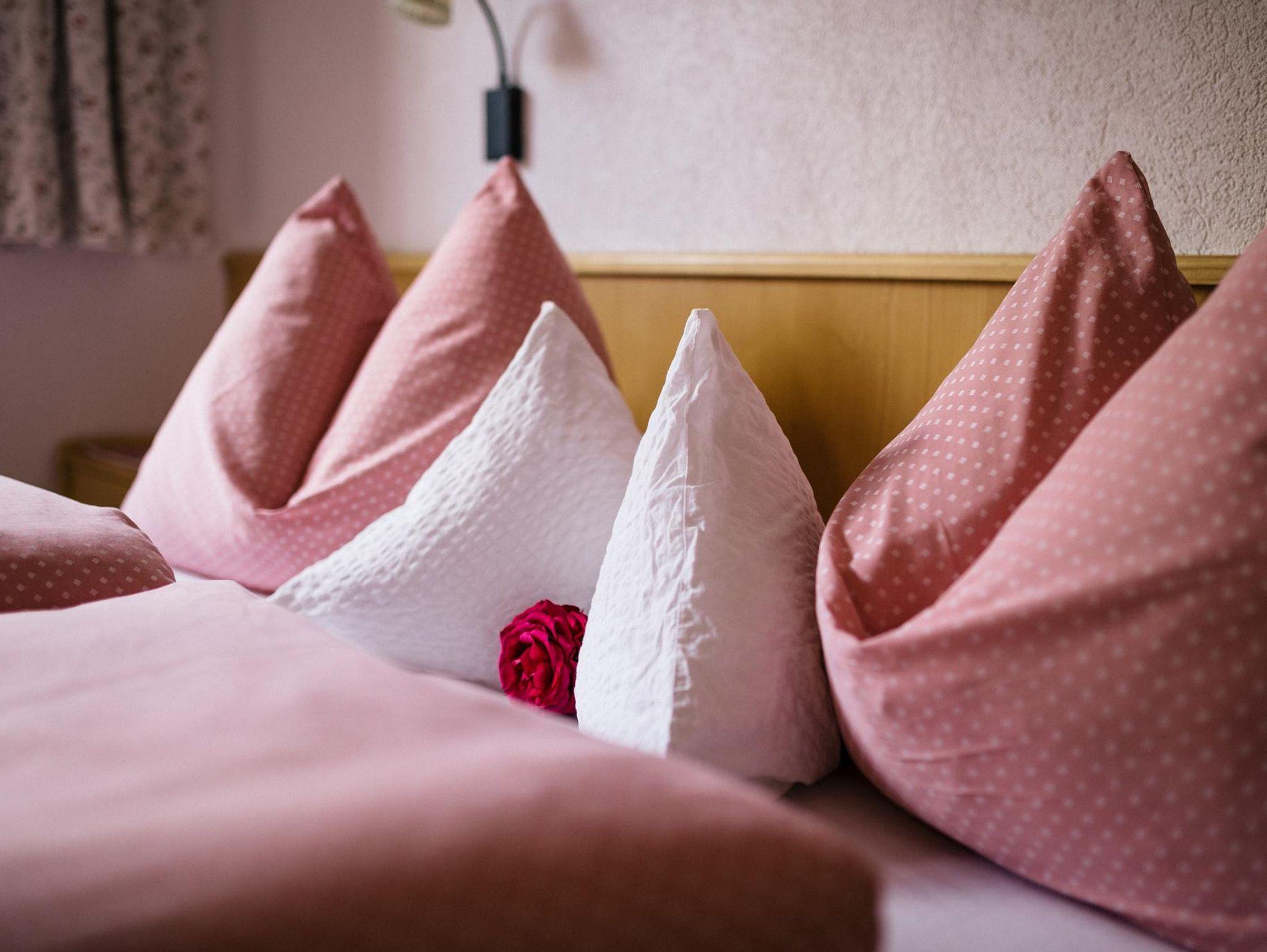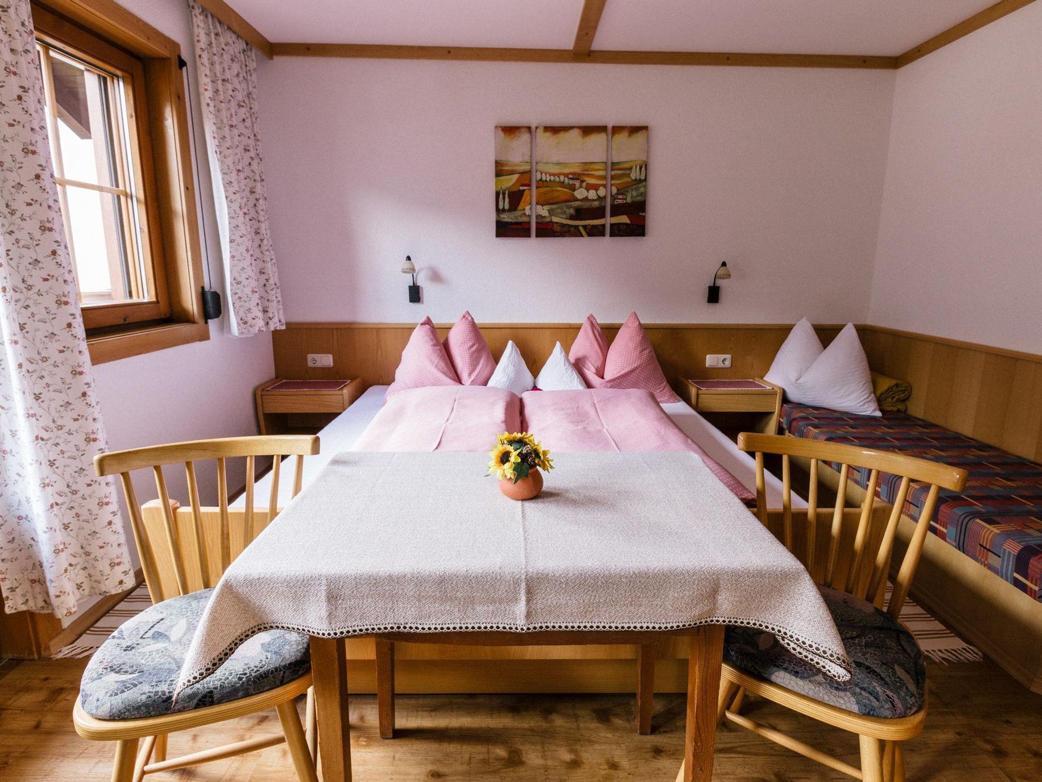 Unsere Zimmer haben eine gemütliche Ausstattung. Sind gänzlich aus heimischem Zirben-oder Fichtenholz und Holzfußboden ausgestattet. Balkon mit herrlichem Ausblick, Dusche/WC, TV mit Kabelanschluss sowie Regional-TV, W-LAN gratis im gesamten Haus