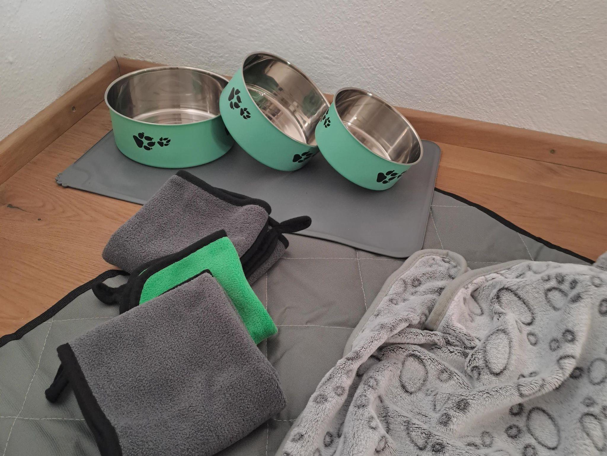 Ein Hund kostet € 15,-- pro Tag; Liege- & Kuscheldecke, sowie Futternäpfe sind vorhanden (vor Ort zu bezahlen).