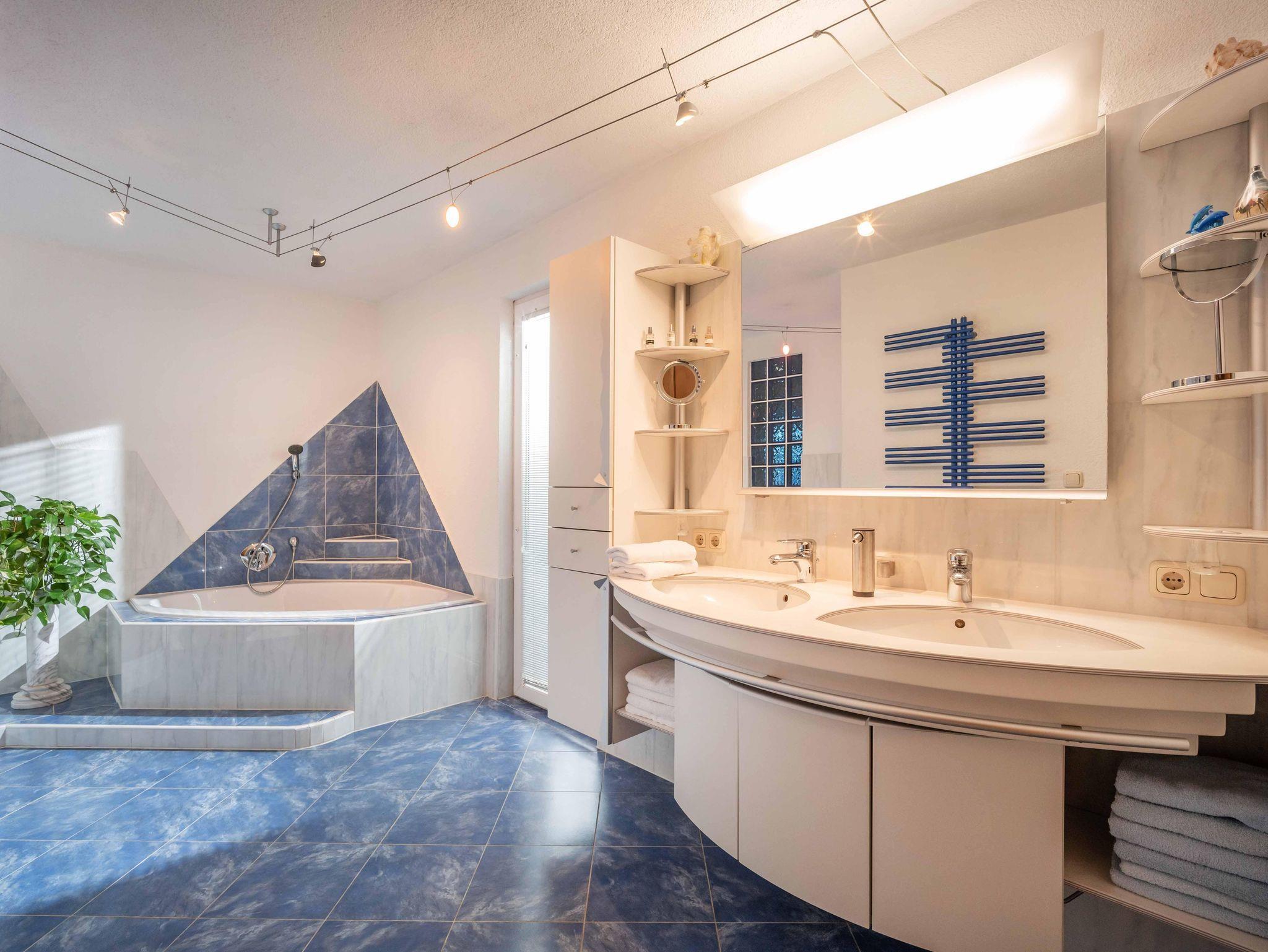 3 Schlafzimmer - eines davon mit Doppelbett, begehbaren Schrank und Tresor.1 Zimmer mit Doppelbett und 1 Zimmer mit handbemalten Vollholzmöbeln und Doppelbett.