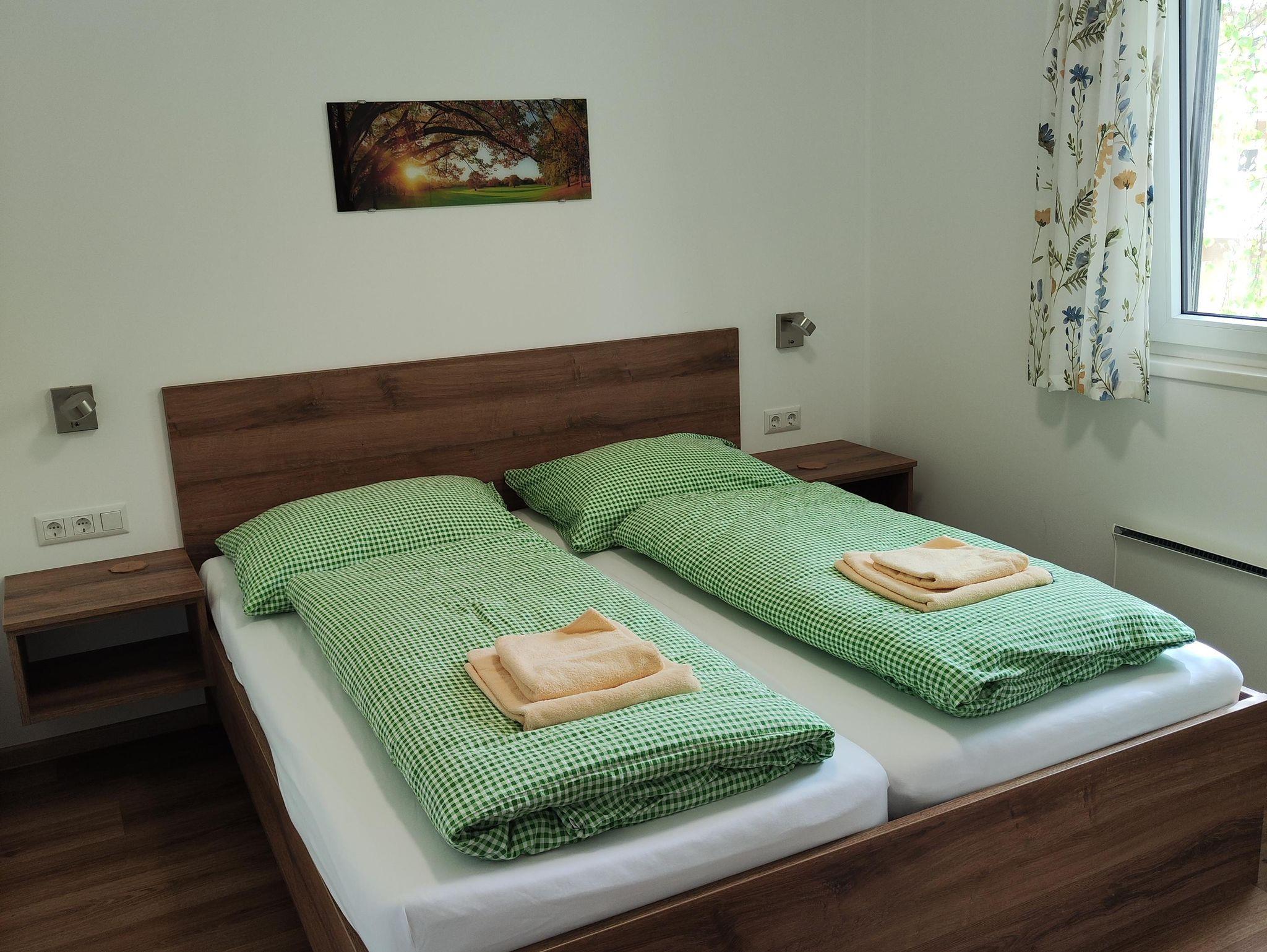 Unsere schöne gelbe Ferienwohnung mit 2 getrennten Schlafzimmer, moderner Wohnecke, Safe und neuer Küche mit Geschirrspüler, Backrohr erwartet Sie. Geniessen Sie Urlaub mit Seeblick! Herrliche Möglichkeit um Ihre Mahlzeiten direkt am Balkon einzunehmen mit wunderschönen Panoramablick. Großzügige Liegewiese direkt vor der Ferienwohnung. Schlafzimmer sind mit Rollos und Insektenschutzgitter ausgestattet. 2 Liegestühle und 1 Sonnenschirm sind in dieser Wohnung für Sie reserviert.
