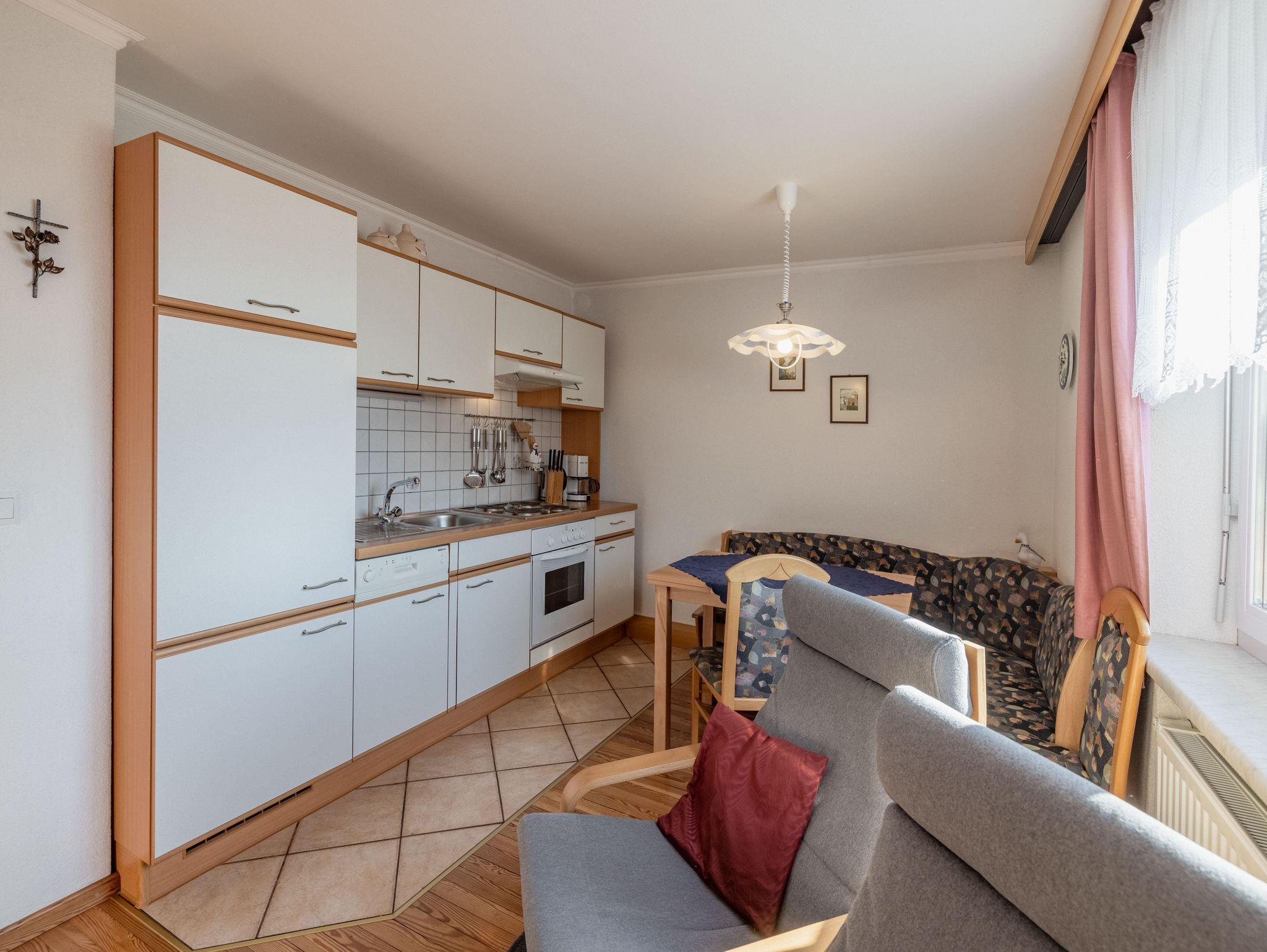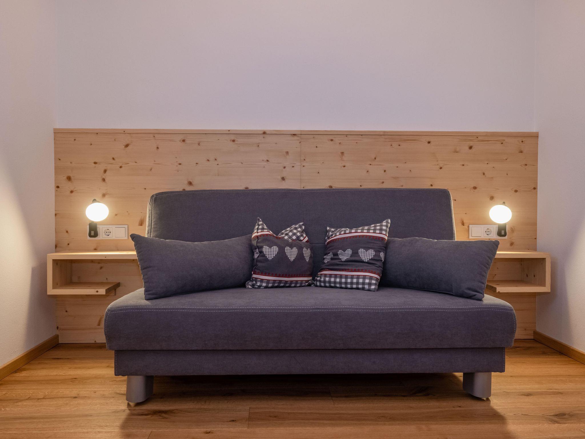 Die Wohnung mit 90m² (+ 24m² Südterrasse) für 2-4 (6) Pers. ist barrierefrei und besteht aus einem offenen Wohn-Koch-Essbereich (Geschirrspüler, E-Herd mit Backrohr und Dunstabzug, Kühlschrank mit Gefrierfach, Mikrowelle, Kaffeemaschine, Wasserkocher) mit SAT/TV, Bad mit Regendusche und Handtuchtrockner, getrenntes WC. Auf Wunsch kann ein zweites Bad mit Regendusche und WC dazugebucht werden. Die Wohnung bietet zwei Schlafzimmer für je 2 Personen mit geöltem Eichenparkett, ein Spielezimmer mit Ausziehschlafcouch und eine großzügige Südterrasse (24m²).