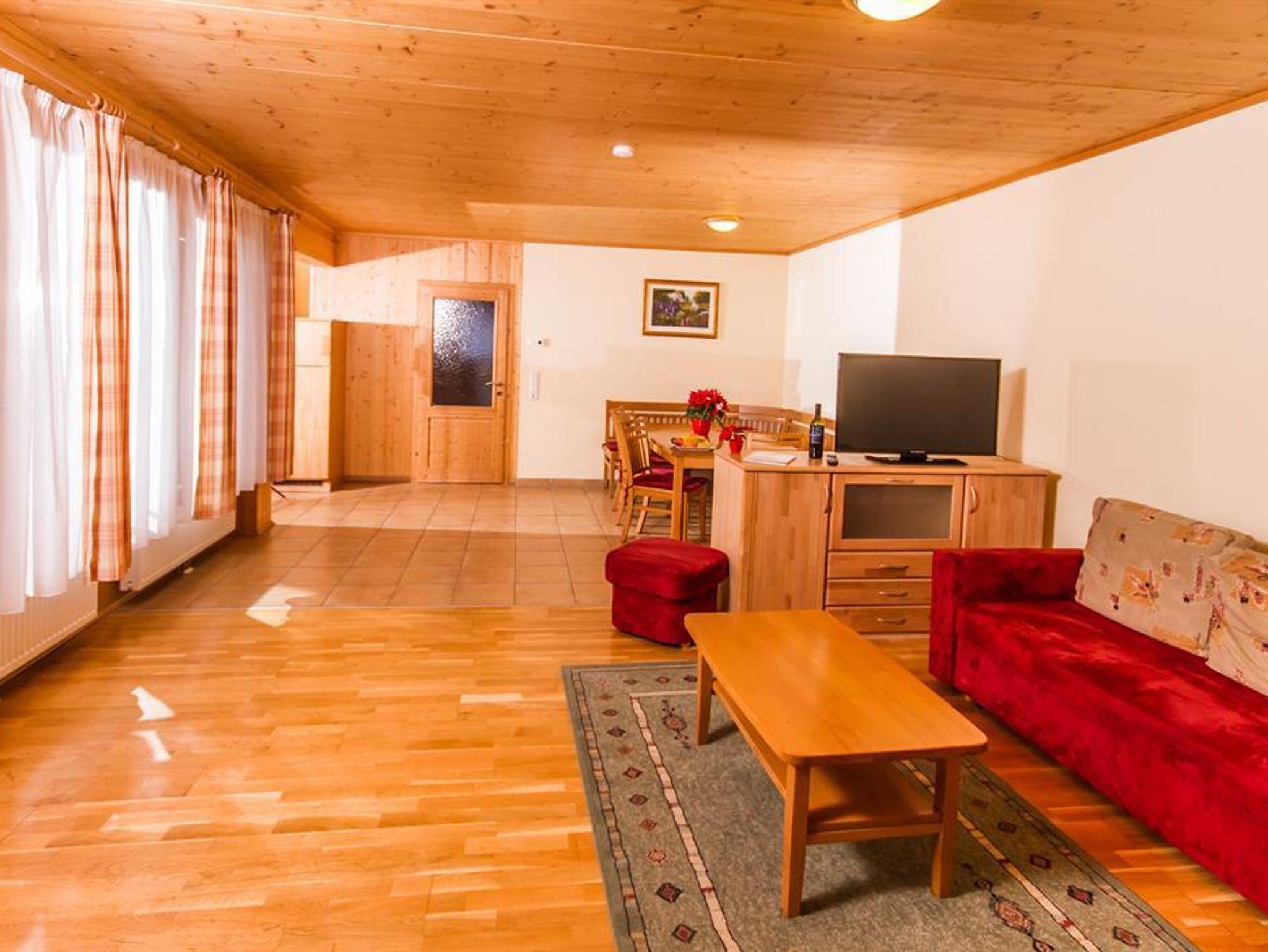Gemütlich und modern eingerichtetes Appartement, Schlafzimmer mit Stockbett, großzügiger Wohnraum mit Doppelschlafcouch, SAT-TV, Zimmersafe, Bad/WC getrennt, voll ausgestattete Küche – Kühlschrank mit Eisfach, Mikrowelle, E-Herd mit Ceranfeld, Kaffemaschine, Toaster etc. sowie mit einer Essecke. Eigener Skistall für jedes Appartement. Zusätzlich bietet jedes Appartement eine eigene Balkon-Loggia mit Tisch und Stühlen, und einen traumhaften Panoramaausblick. Auf Wunsch stellen wir gerne Kinderbetten, Kinderhochstühle, und Babybadewannen kostenlos zur Verfügung.