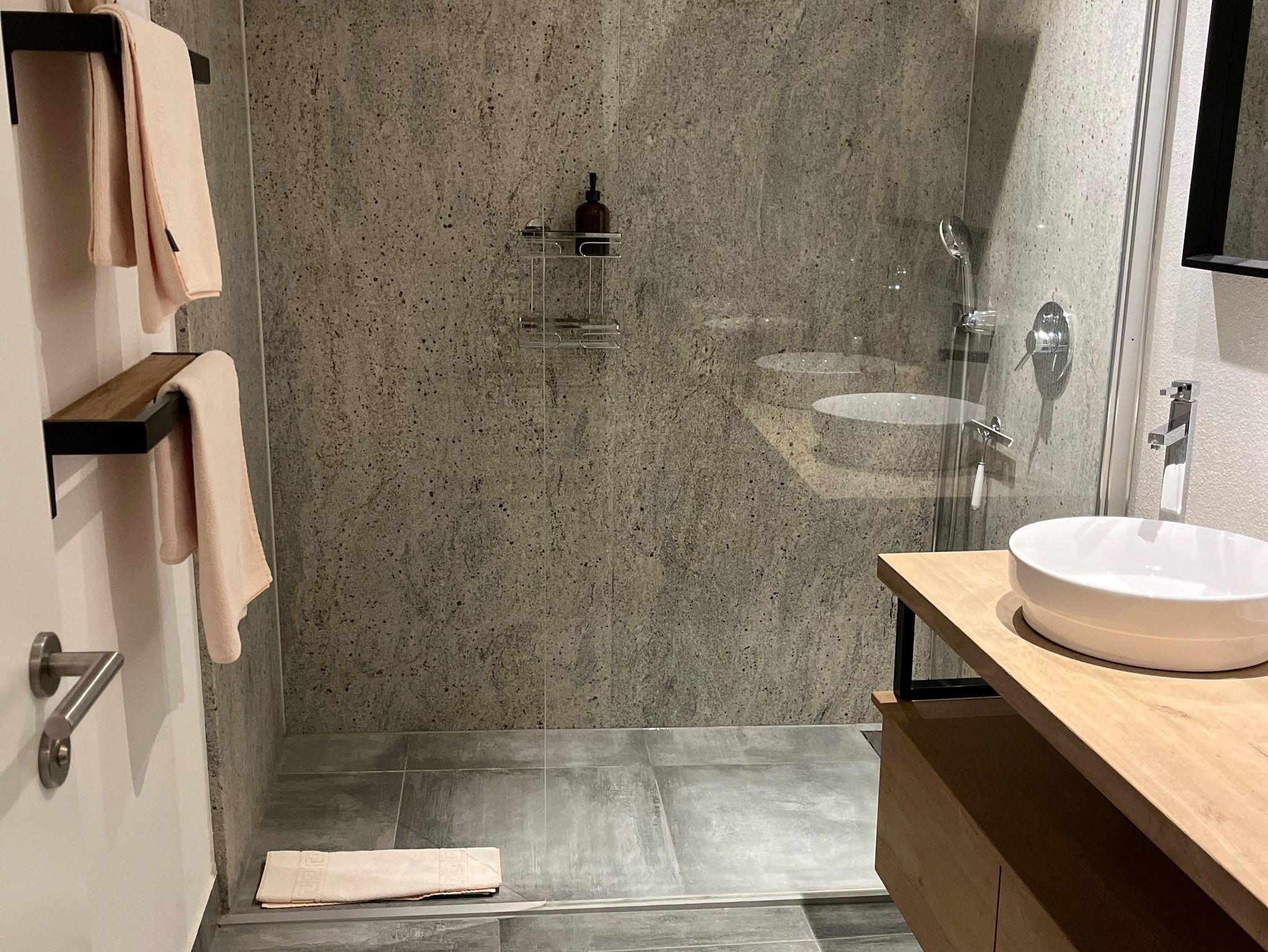 Apartment (105qm) mit 2 Schlafzimmer, 1 Badezimmer Du/Wc, großem Wohnbereich mit voll ausgestatteter Küche, große Terrasse mit Gartenblick und Loggia mit Bergblick