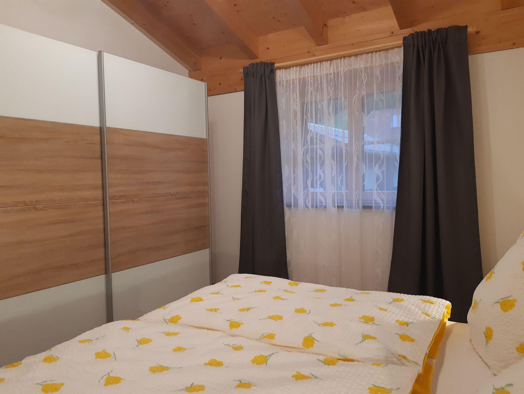 Die gemütliche Wohnung mit sichtbarem Dachstuhl besteht aus einer großen Wohnküche mit Zugang zum Südbalkon, einem Schlafzimmer, Bad mit Wanne, Dusche, Waschbecken und Fenster, einem separaten WC, Flur, sowie - bei Bedarf - einem separaten Raum mit Stockbett.