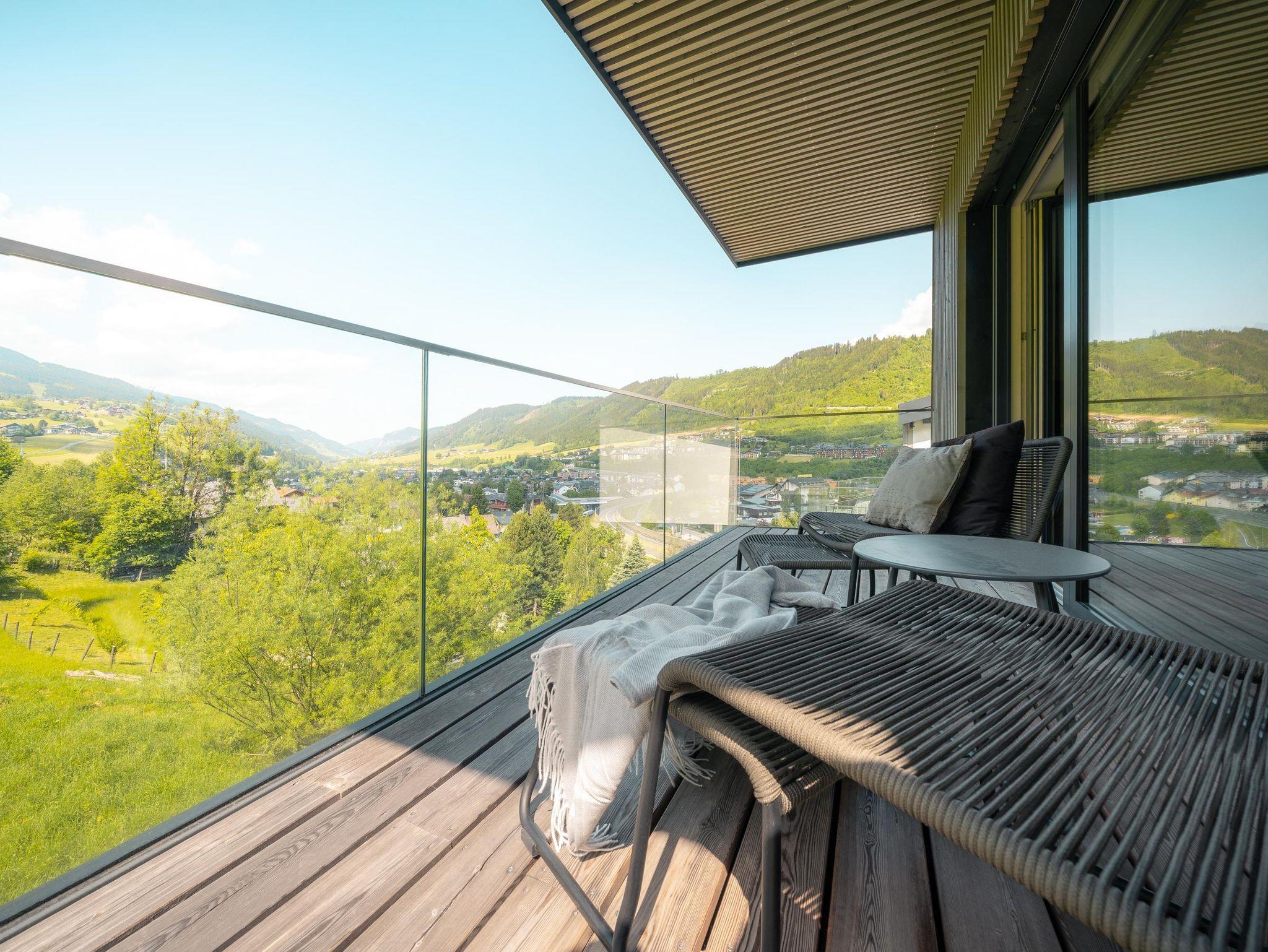 - Balkon in Richtung Norden mit Dachsteinblick, in Richtung Westen mit Blick ins Ennstal oder mit Terrasse Richtung Westen