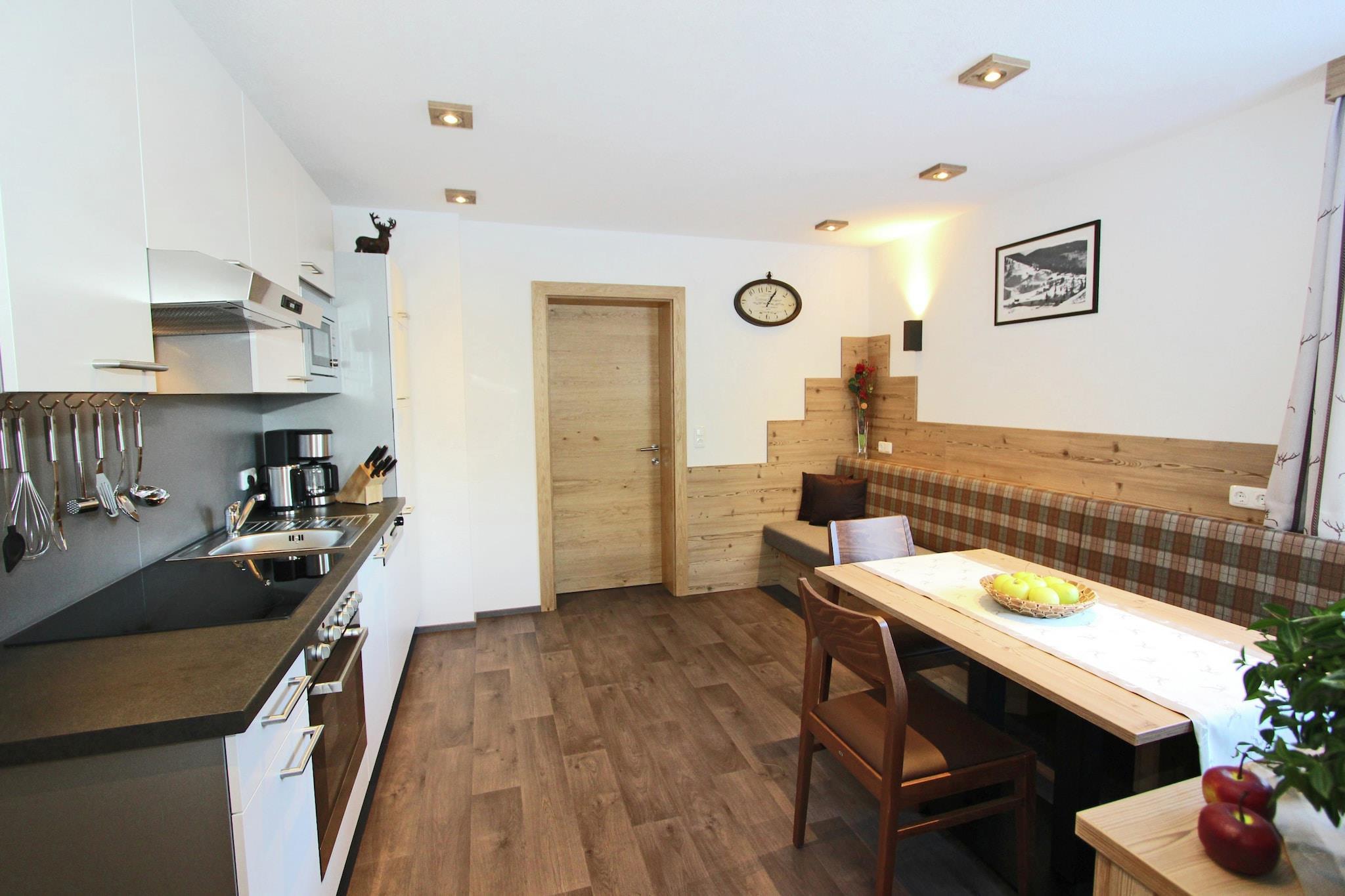 Dieses moderne Apartment für maximal 5 Personen befindet sich in einem Ferienhaus im kleinen Ort See, direkt an der Talabfahrt des Skigebietes See im Paznauntal in Tirol, zwischen Landeck und Ischgl, und bietet einen schönen Panoramablick. Das im alpinen Stil eingerichtete Apartment verfügt über eine große Wohnküche mit Esstisch, eine offene vollausgestattete Küche, 2 geräumige Schlafzimmer mit Badezimmer en-suite (eines davon mit ein extra Einzelbett) und eine schöne Terrasse. Das Ferienhaus bietet ebenfalls einen Skiaufbewahrungsraum mit Skischuhheizung sowie ein Garten mit Gartenmöbeln. Parkmöglichkeiten gibt es direkt beim Ferienhaus. Das Skigebiet See ist ein kleiner Geheimtipp mit 33 Pistenkilometern und ein Snowboard - Funpark und Teil der Skischaukel Kappl & See im Tiroler Paznaun mit insgesamt 84,5 bestens präparierte Pistenkilometern. Eingebettet in die Kulisse der Tiroler Bergwelt befindet sich direkt im Zentrum von See ein Spiel-, Sport- und Wasserpark sowie ein Badesee, für Badespaß und Sport pur im Sommer. Ebenfalls bietet die Region Outdoor-Sportaktivitäten wie Wandern, Fahrradfahren, Mountainbiken und Klettern. Direkt im Ort gibt es ausreichend Einkaufsmöglichkeiten für den täglichen Bedarf sowie eine gute Auswahl an Restaurants. Bitte beachten Sie, dass diese Unterkunft kein Mitglied der Premium Card ist!
