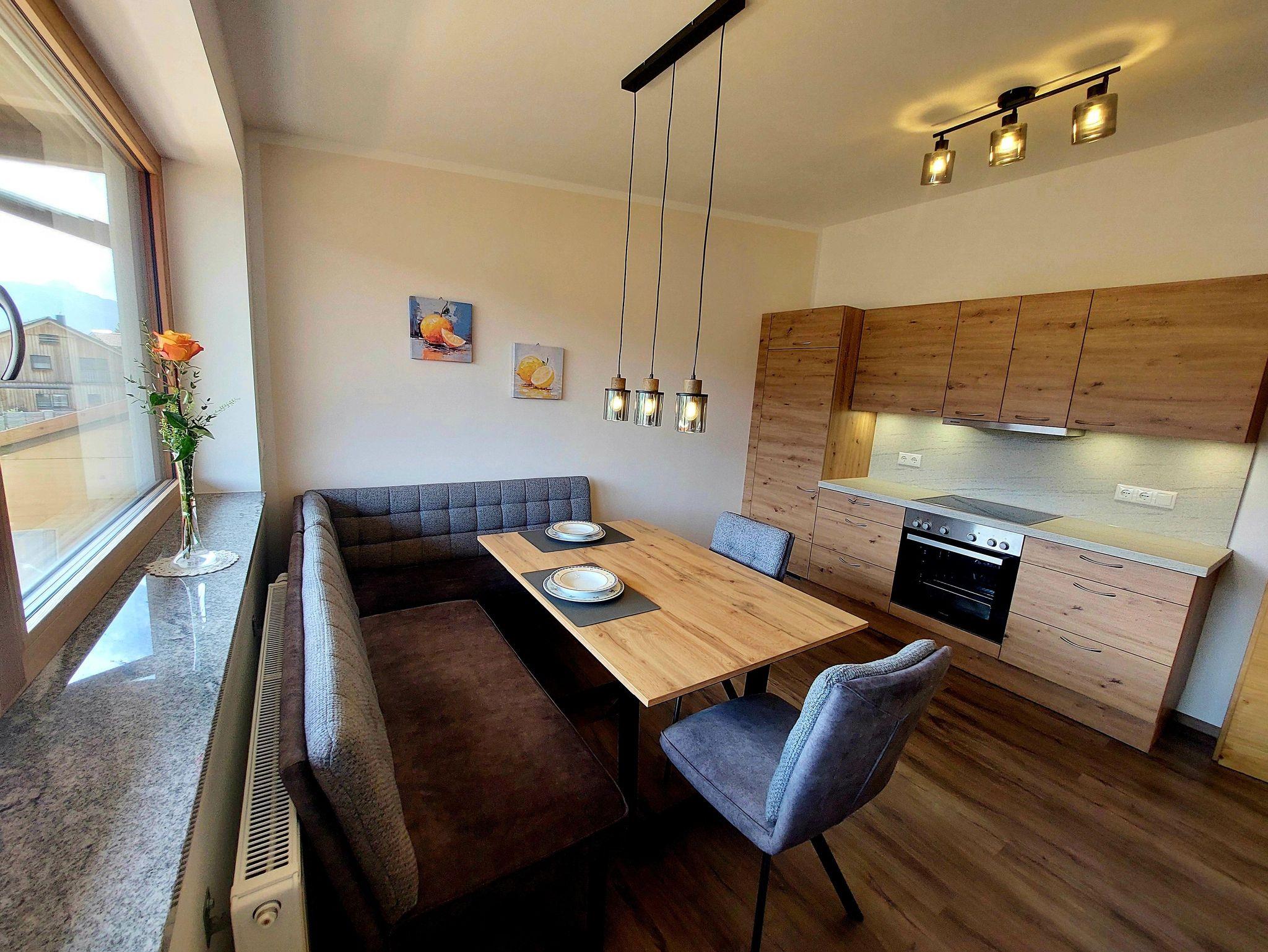 und verfügt über eine eigene Küche mit Backmöglichkeit, Mikrowelle, Kühlschrank mit Gefrierfach, Geschirrspüler und einer gemütlichen Essecke,