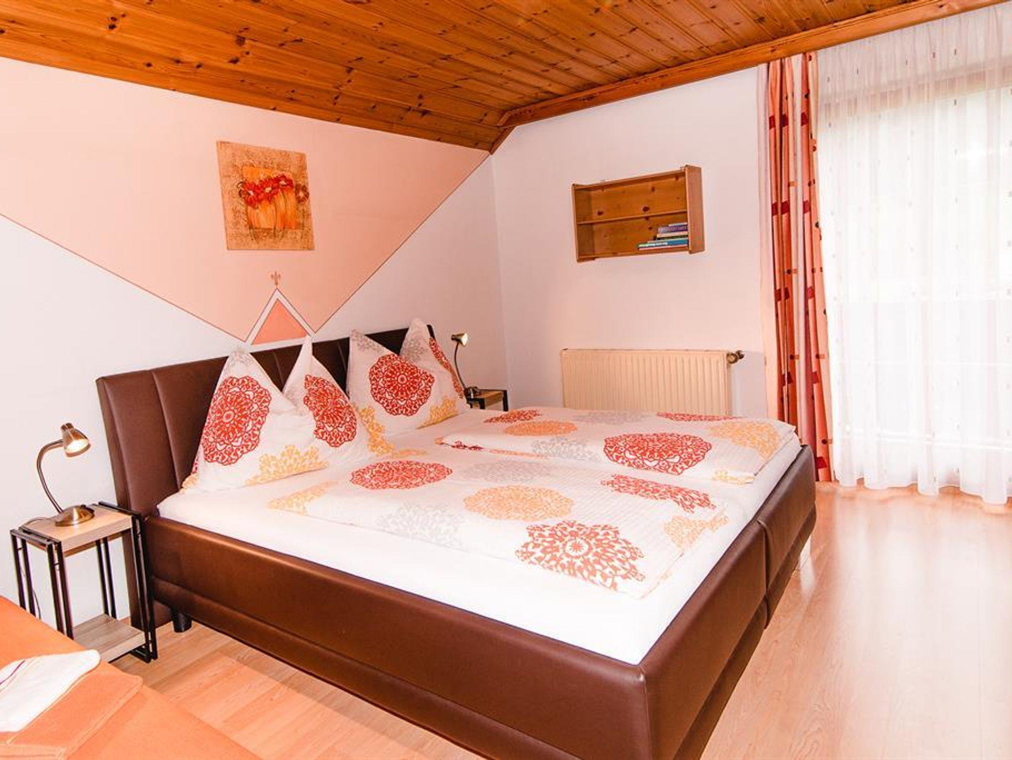 Unser Haus liegt am Ortsrand in ruhiger Lage, 100 Meter von der Landstraße entfernt. Radweg führt direkt vor dem Haus vorbei. Die Ferienwohnung verfügt über 70 m². Eingang im Erdgeschoß mit Treppe zur 1. Etage. Wohnraum mit Couch, Küchenzeile, Essecke, Flat-TV. 2 Doppelzimmer und 1 Einbettzimmer. 2 Duschen mit WC . Alle Zimmer mit TV und Balkon. Gartenbereich mit Terrasse. Schöner Blick auf die umliegenden Berge. Zum Hauptort St. Michael 3 km entfernt. Brötchenservice, kostenloser Parkplatz, Bushaltestelle 100m entfernt.