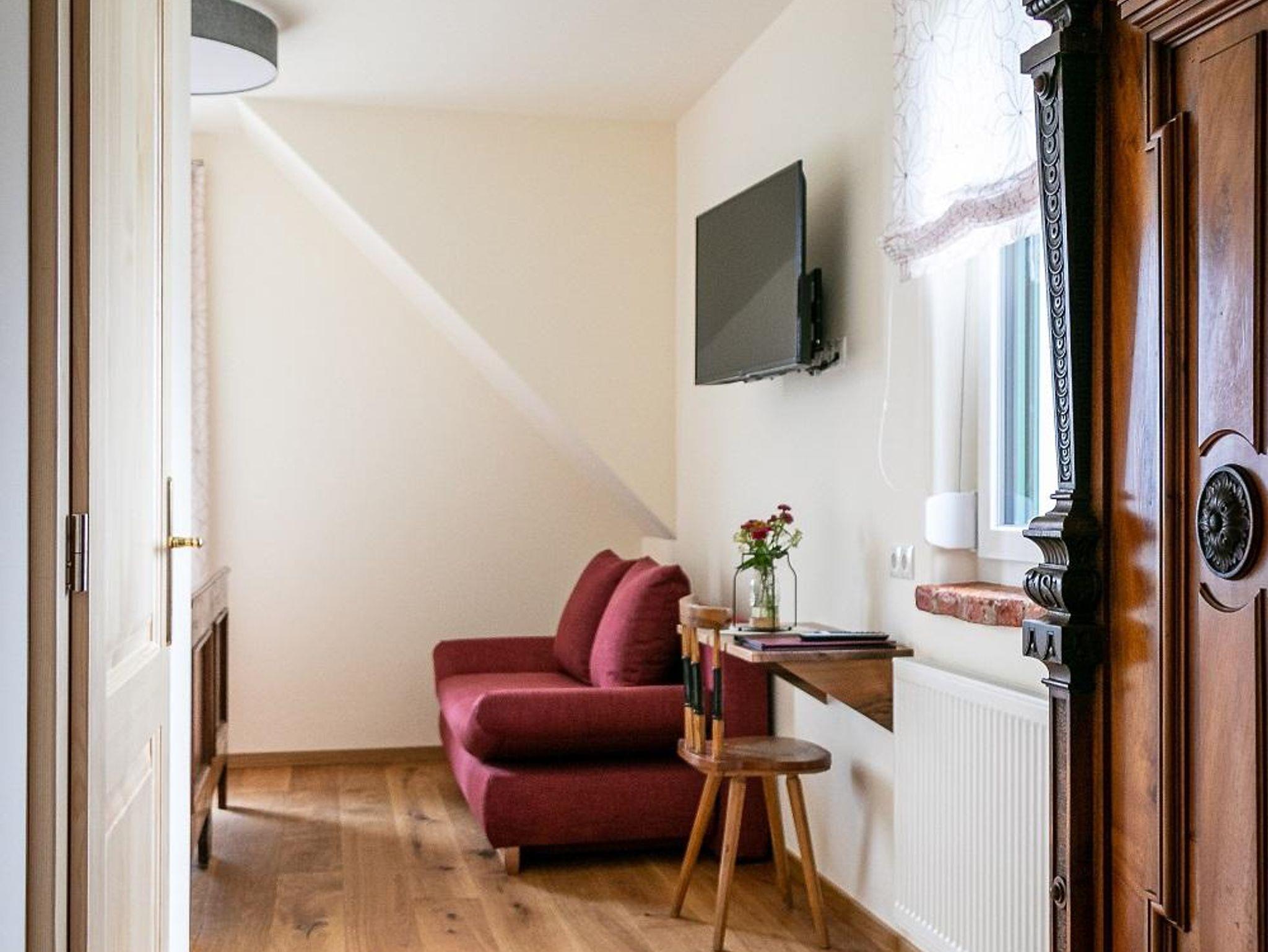 Es befindet sich im 1. Stock und verfügt über ein Doppelbett, eine Sitzmöglichkeit, Fernseher, kostenlosem W-LAN sowie Badezimmer mit getrenntem WC.