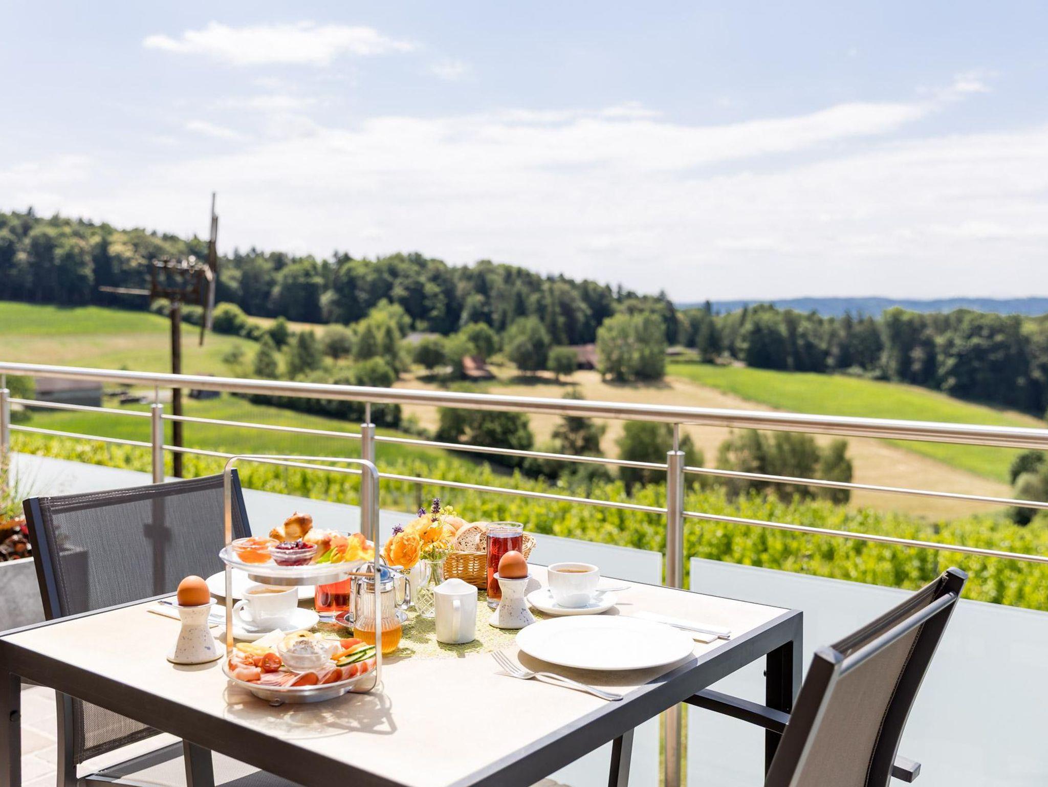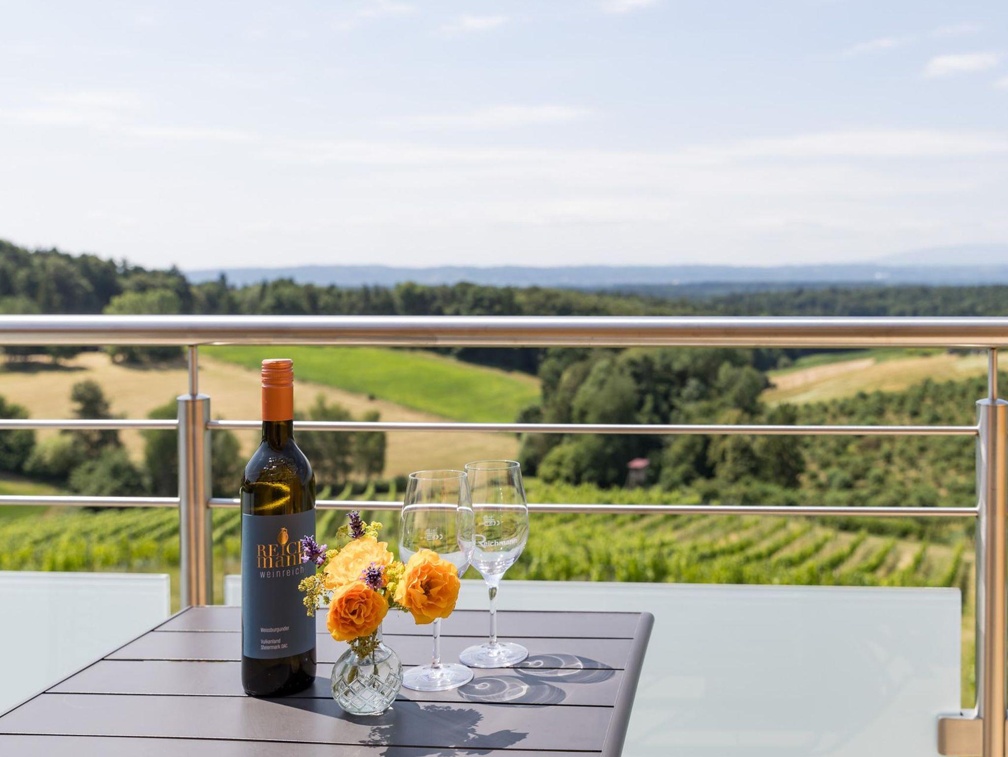 Vom Balkon haben Sie eine Aussicht in unsere wunderschöne Weinlandschaft und darüber hinaus.